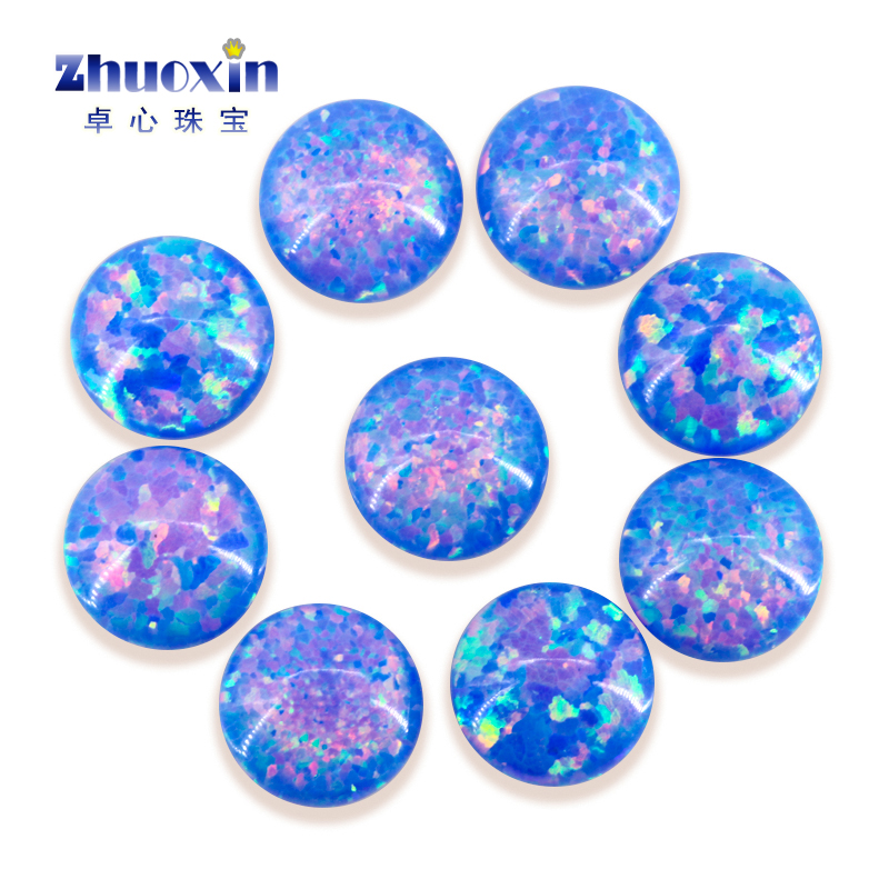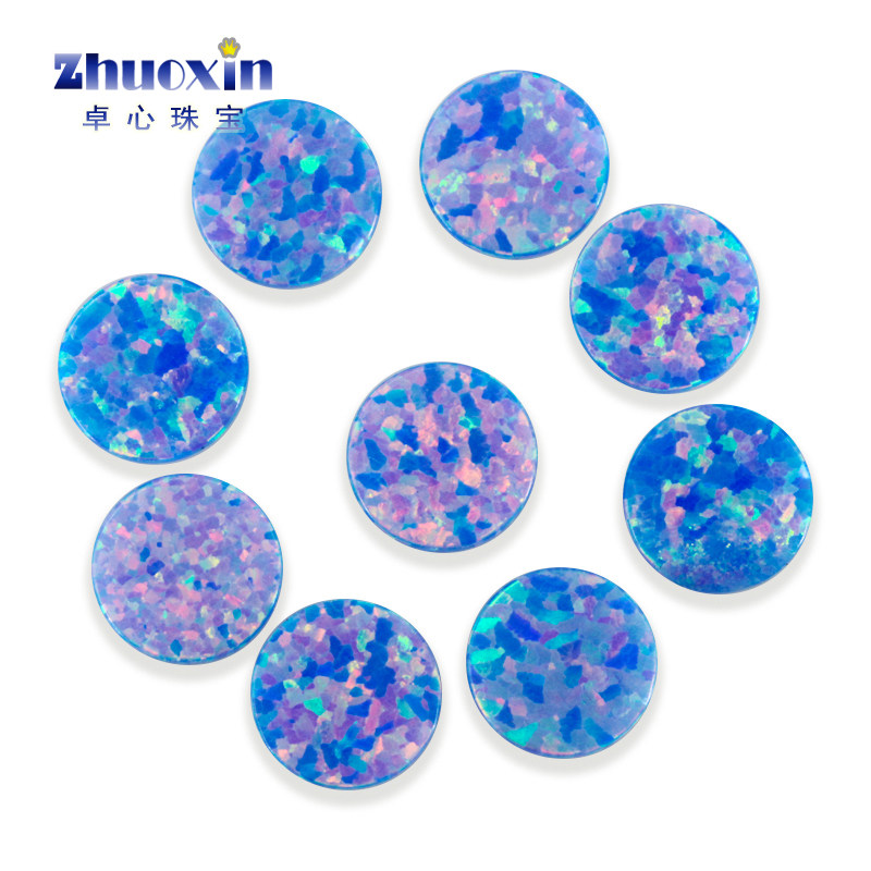 圆形多火彩人造欧泊OPAL 平底素面蓝色红彩欧珀澳宝戒面裸石 OP74