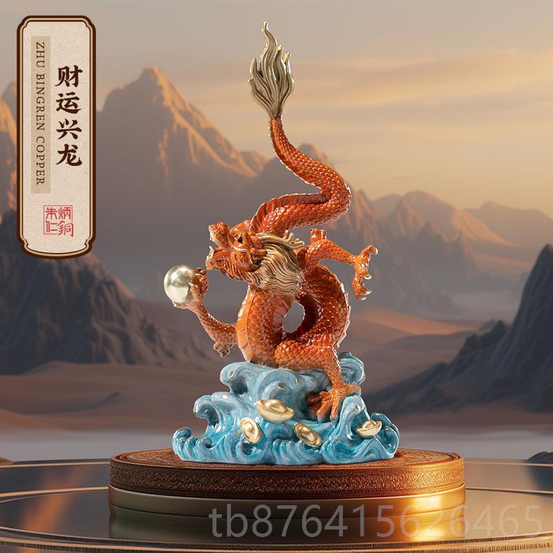 正品件朱炳仁铜 居财运桌兴龙腾飞版龙年摆面办公室家装饰开业礼