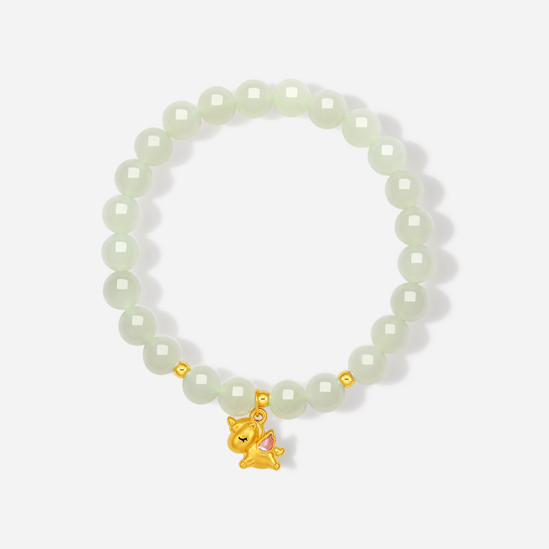 周六福金镶玉5D硬金和田玉梦幻小马生肖马手串圣诞礼物