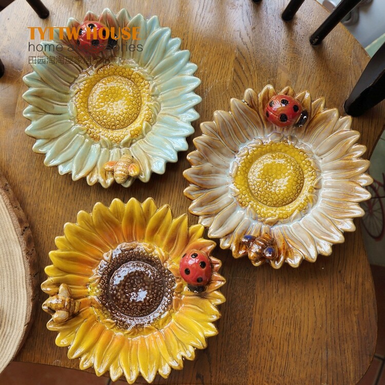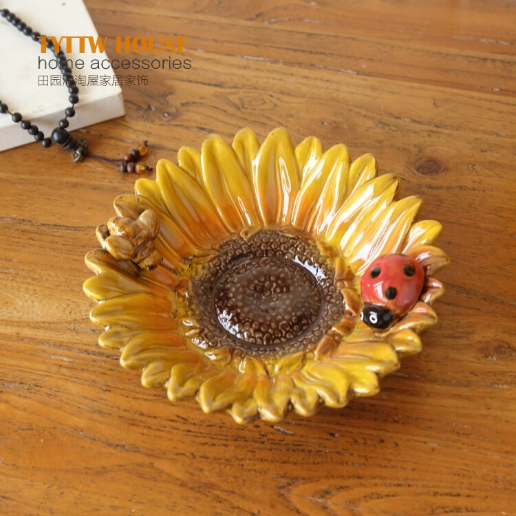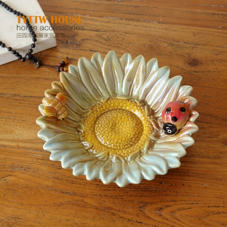 欧式家居饰品向日葵甲壳虫陶瓷烟灰缸装饰英式点心盘子瓜子碟皂托
