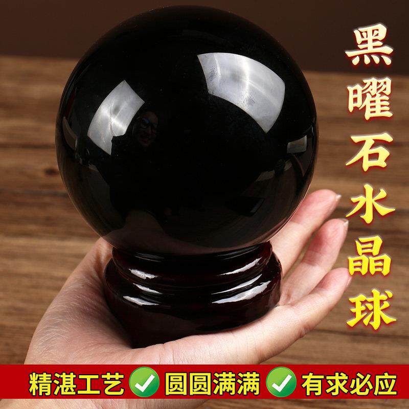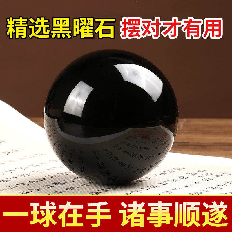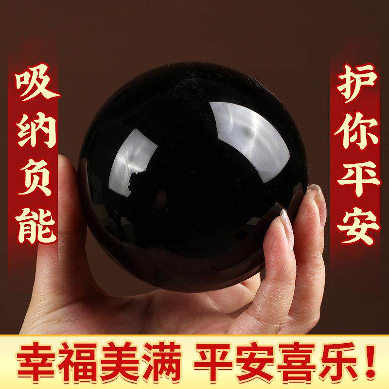 黑曜石水晶球桌面招财摆件黑色天原石然打磨客厅办公玄关乔迁礼物
