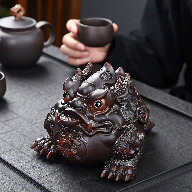 热销手工大号招财金蟾茶盘紫陶茶玩茶桌茶宠可养装饰摆件精品茶具