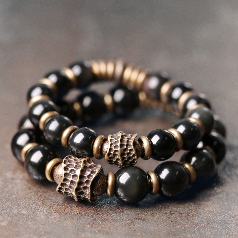 原创设计黑曜石圆珠子情侣手链 简约复古个性手串男潮串珠手饰女