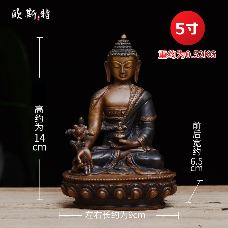 欧斯特 药师佛铜像尼泊尔手工居家中式玄关桌面客厅装饰铜摆件5寸