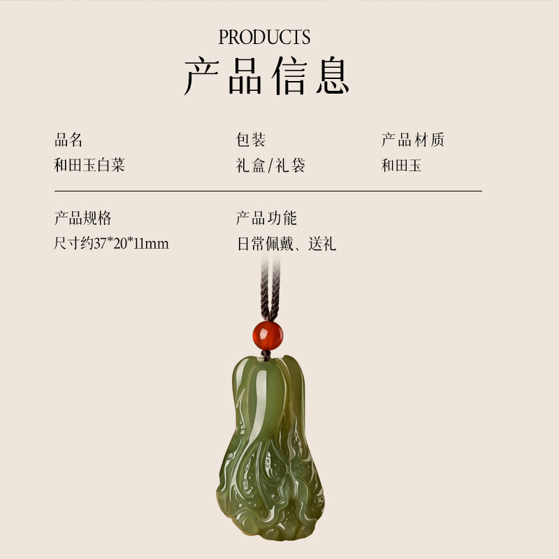 遇见普陀山和田玉白菜吊坠玉石挂件男女招财进宝玉佩百财聚来礼物