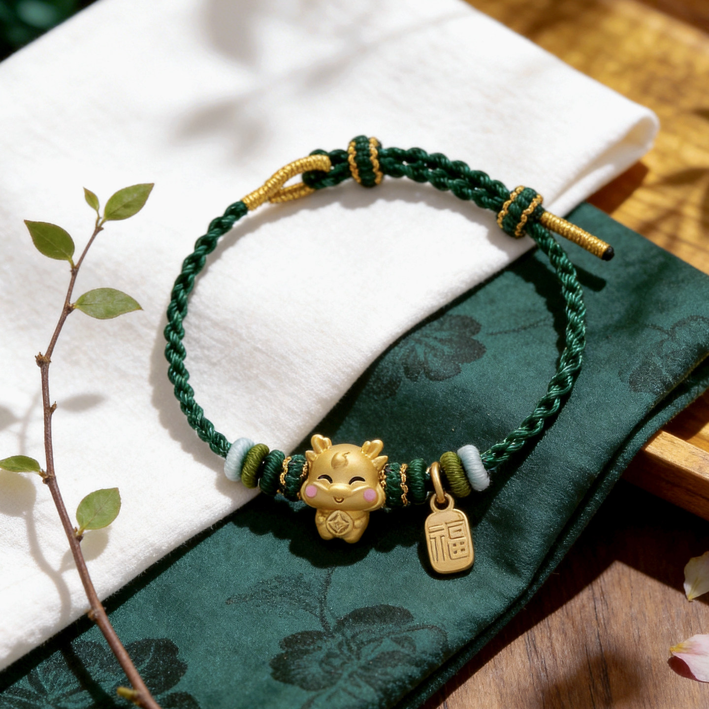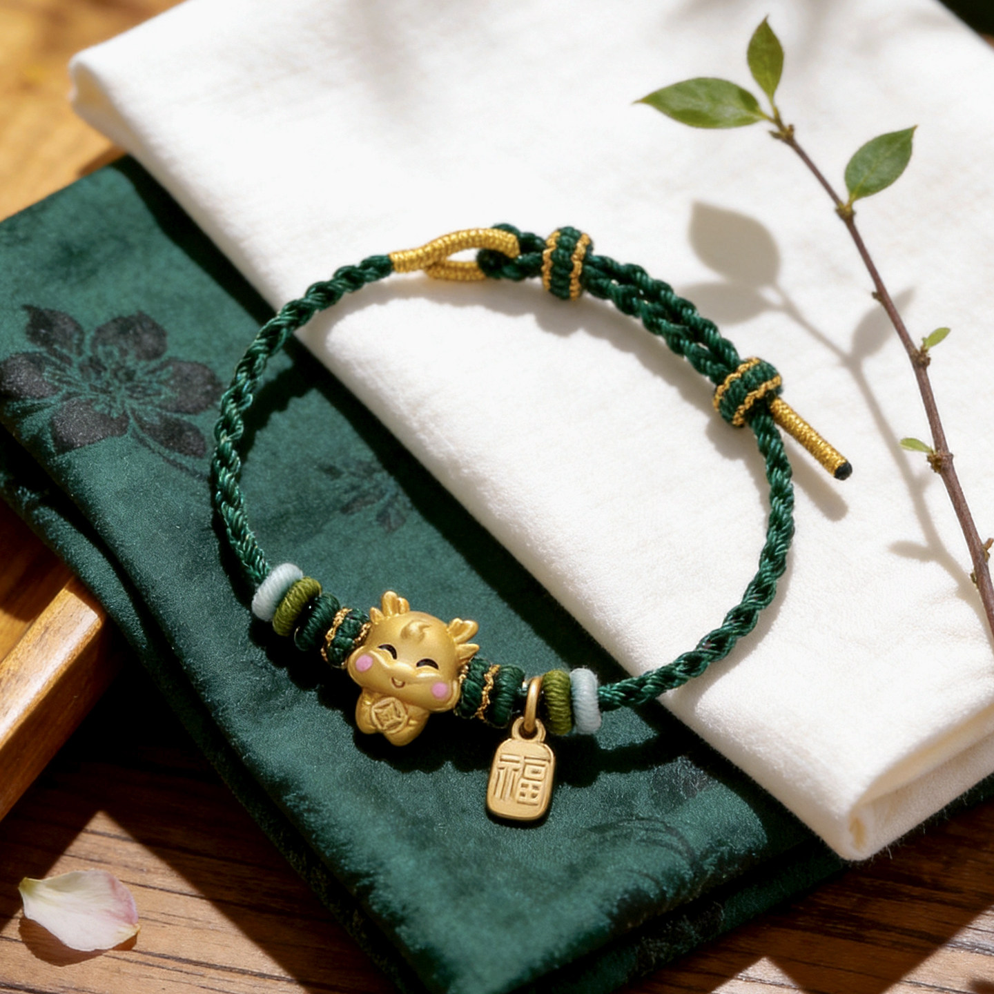 细款2mm手工编织绳绿色简约手绳可穿珠黄金转运珠可调节编绳手链