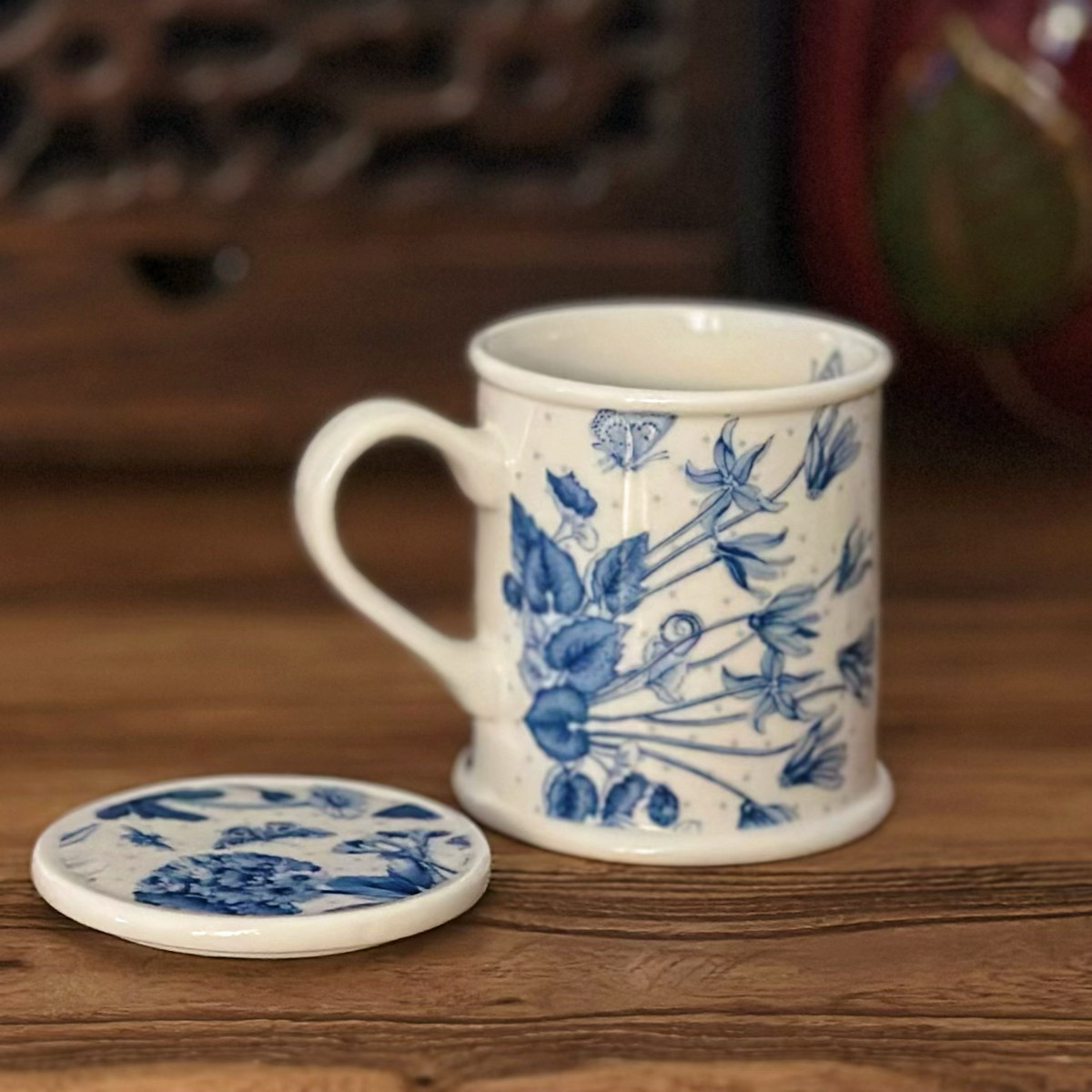 持续瓷生英国波特美林portmeiri**蓝色花把手马克杯早餐咖啡杯