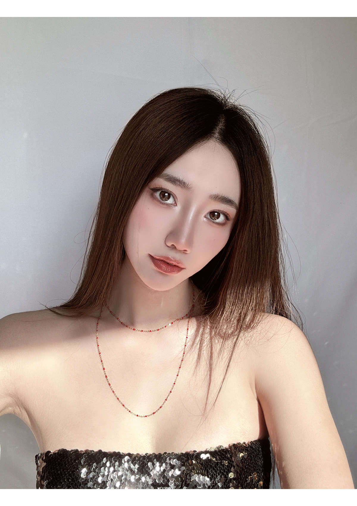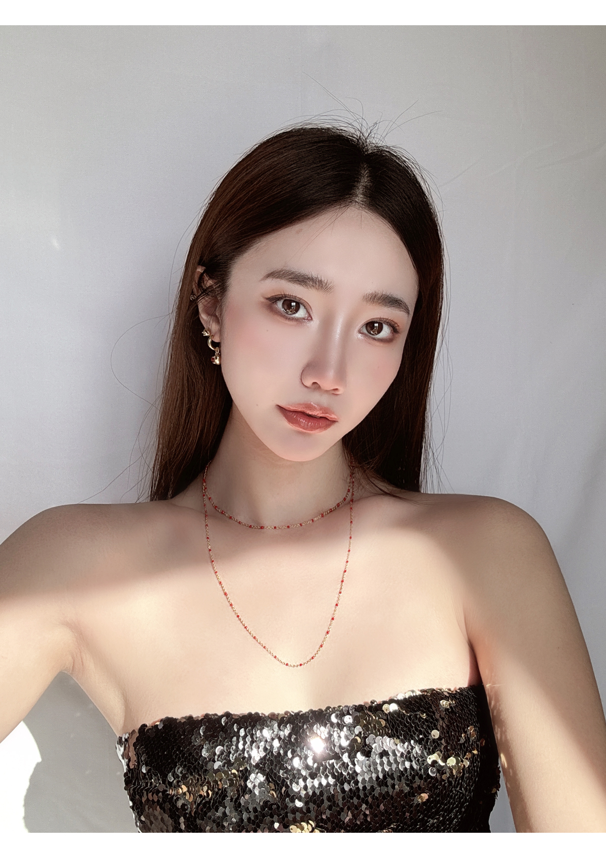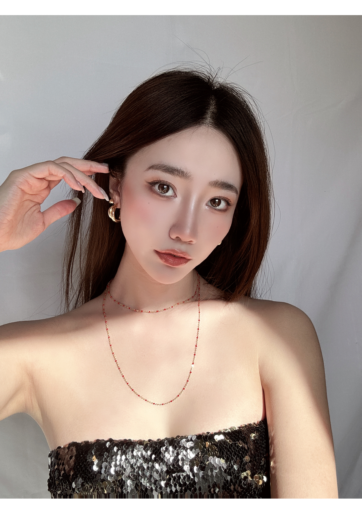 明星同款春节红色珐琅彩S925纯银镀18K金色超长双层珠珠毛衣项链