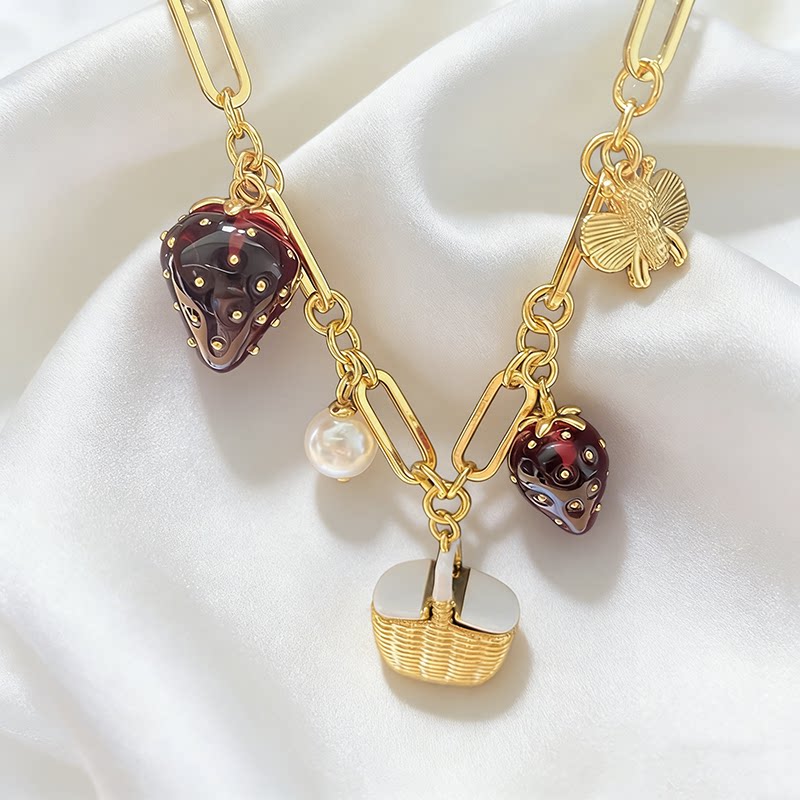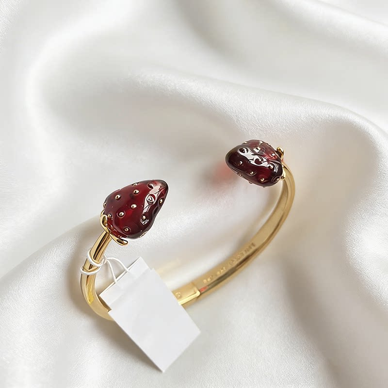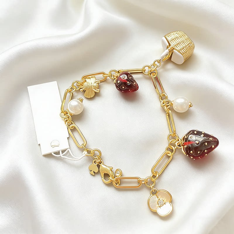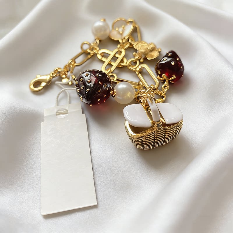 甜美田园风红色颗粒感小草莓形吊坠手链女小篮子蜜蜂花朵KS系手镯
