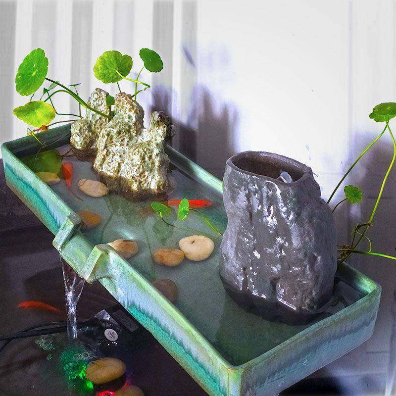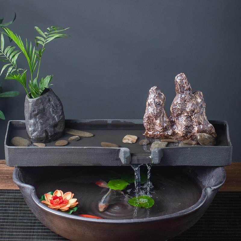 鱼缸流水摆件过滤器循环水池净水养鱼造景装饰创意景德镇陶瓷