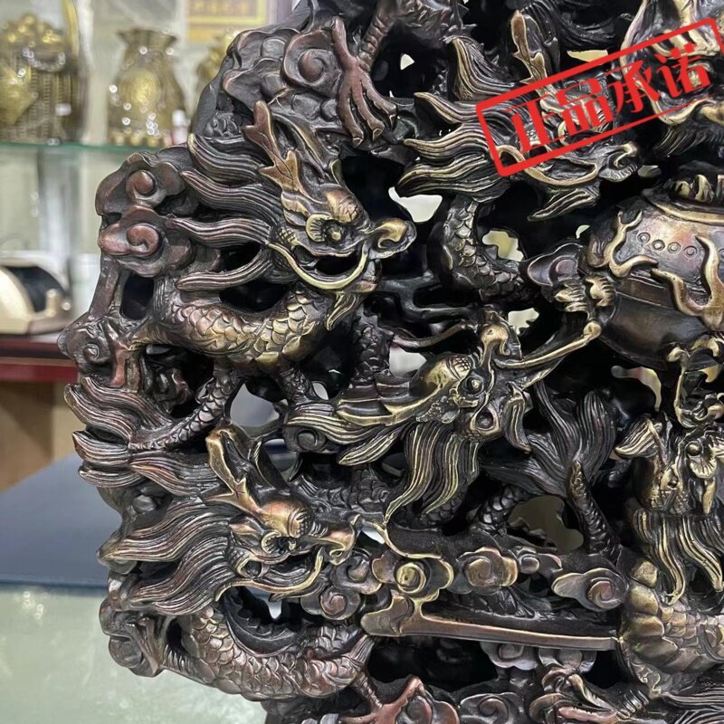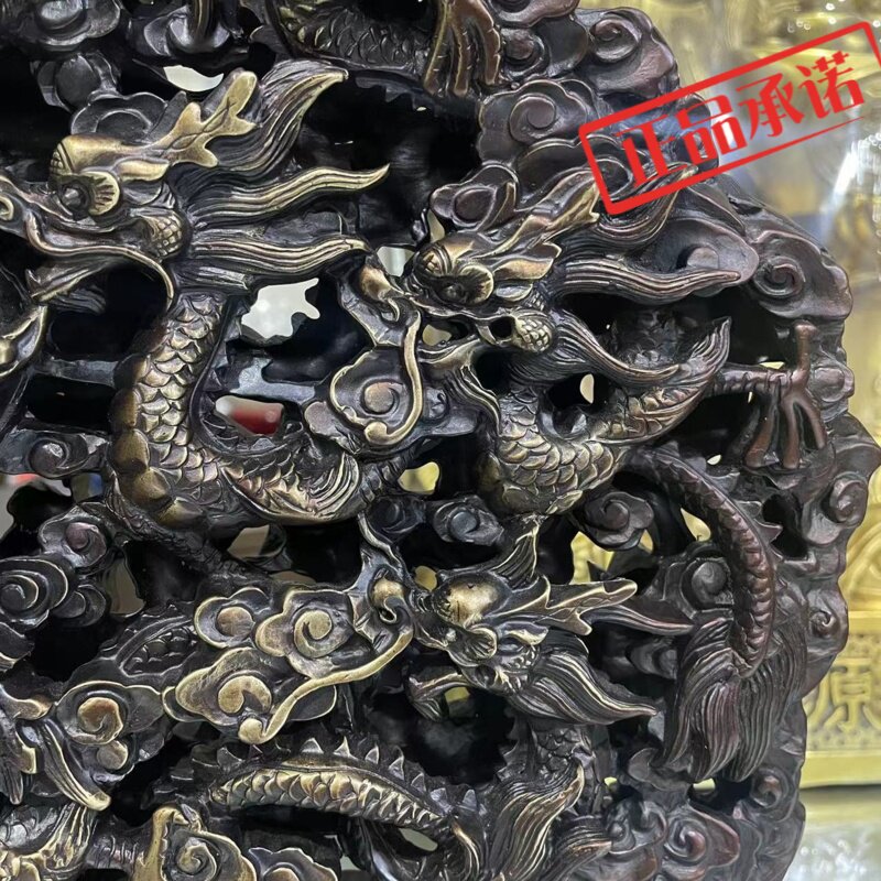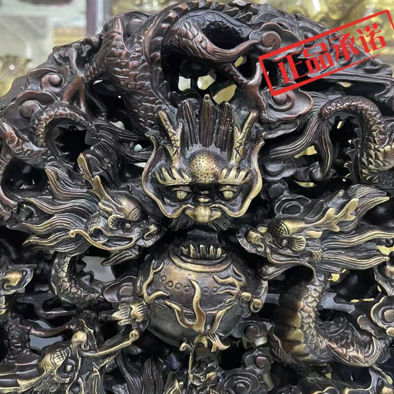 ㊣步步莲花 铜九龙壁家居摆件