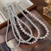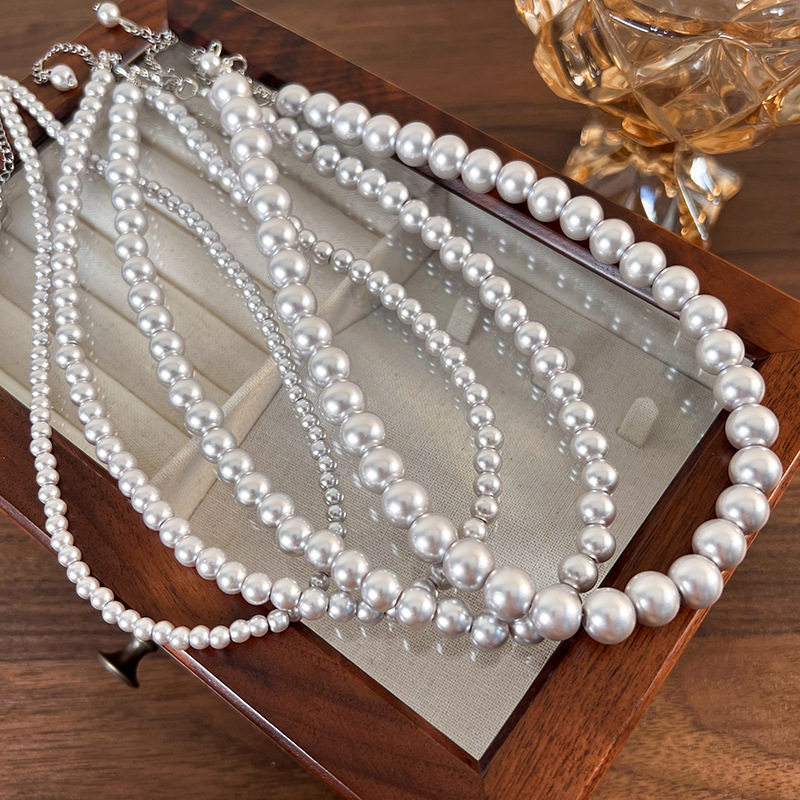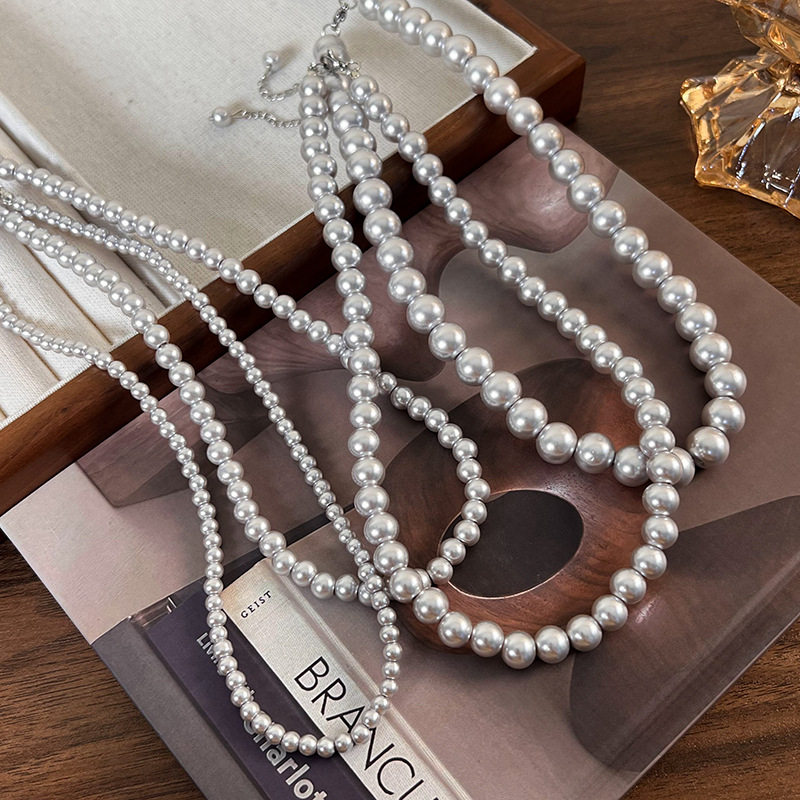 复古灰色珍珠项链倪妮同轻奢小众毛衣锁骨链简约灰珍珠颈链配饰潮