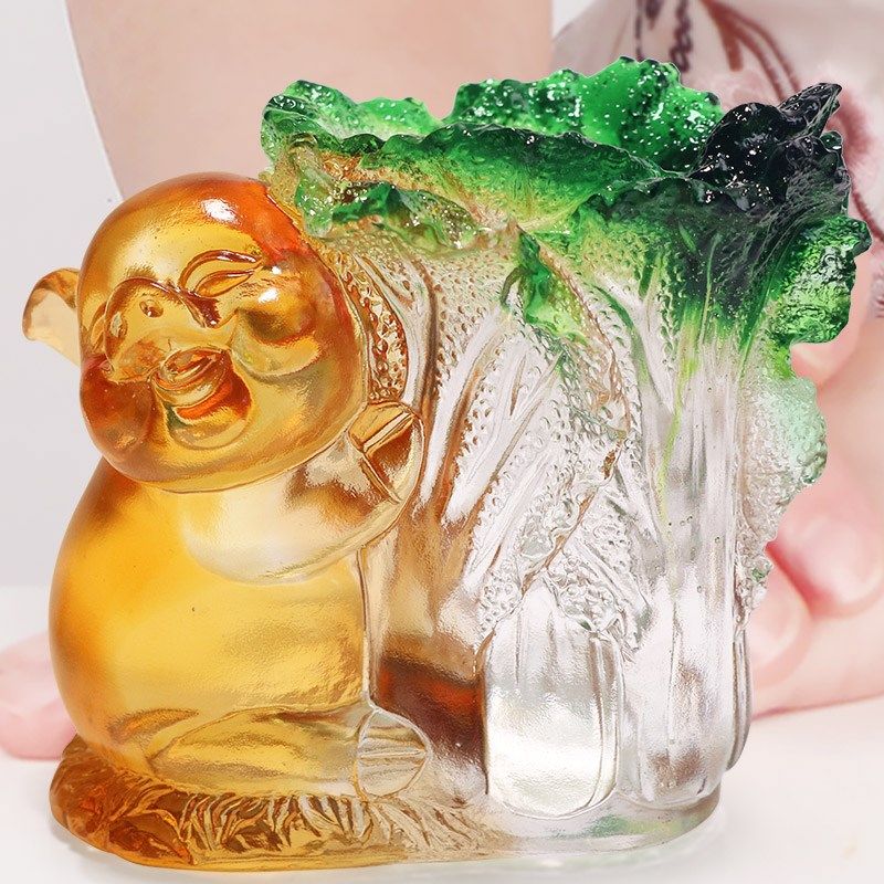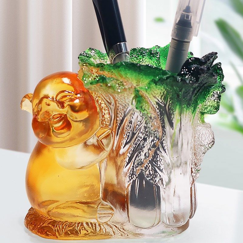 速发礼公室办财桌面摆件琉璃白菜百财笔筒创意生日毕业招物送客户