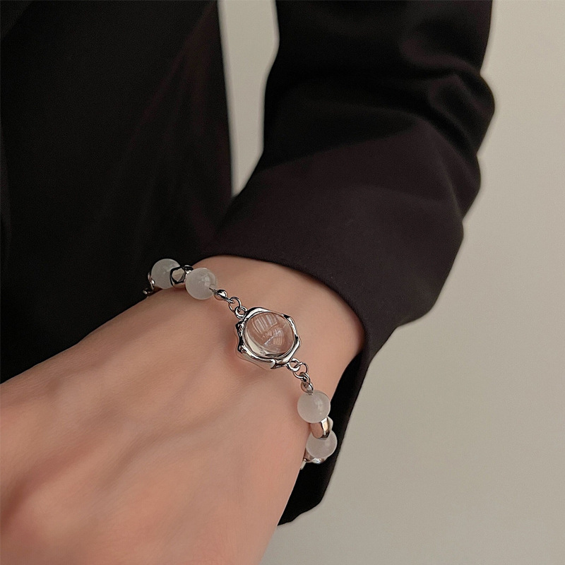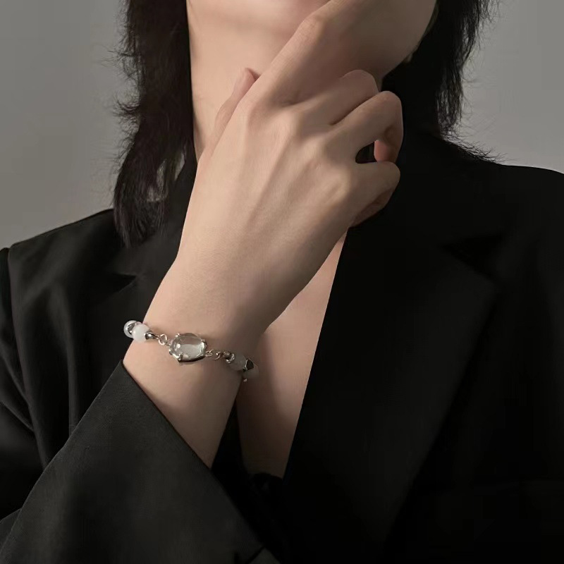 速发设计钛钢手錬男街头小众嘻哈双层链透明纹珠串珠手配链