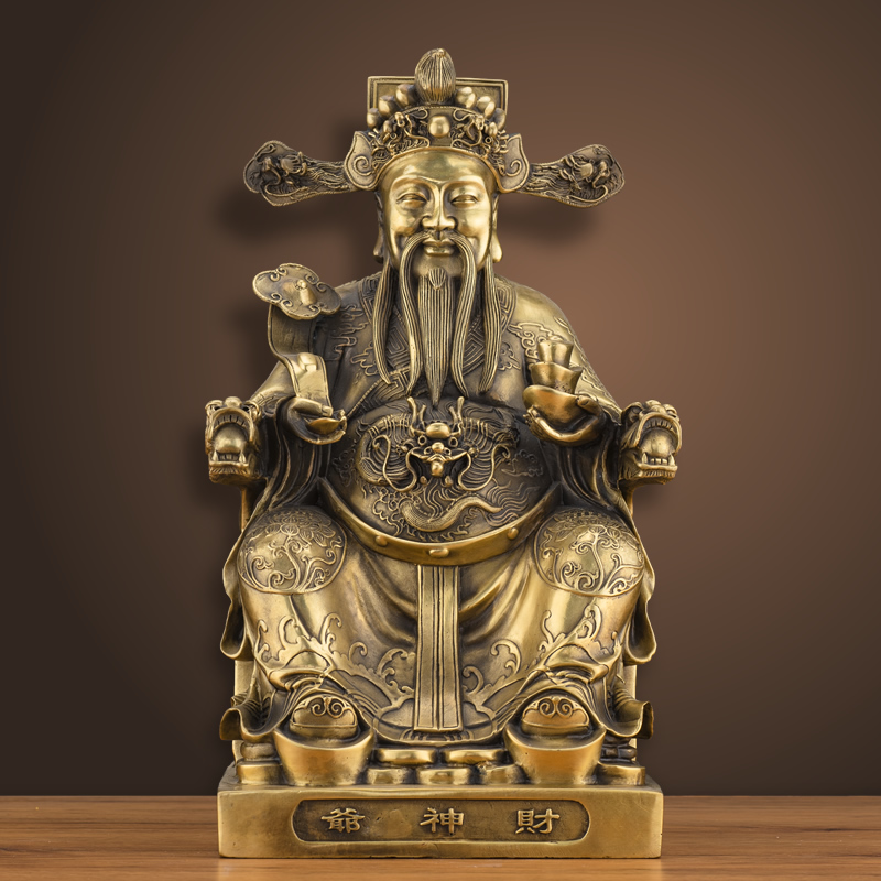 纯铜财神爷摆件家用招财聚宝财神像办公室店铺客厅装饰品开业礼品