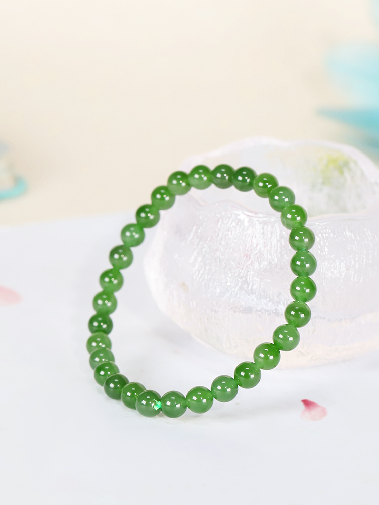 天然碧玉手串俄罗斯碧玉卡6mm手链菠菜绿阳绿圆珠小红书单圈