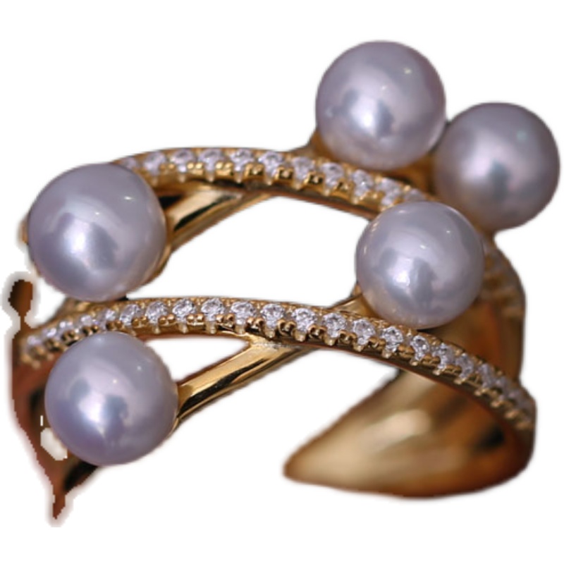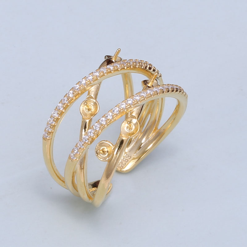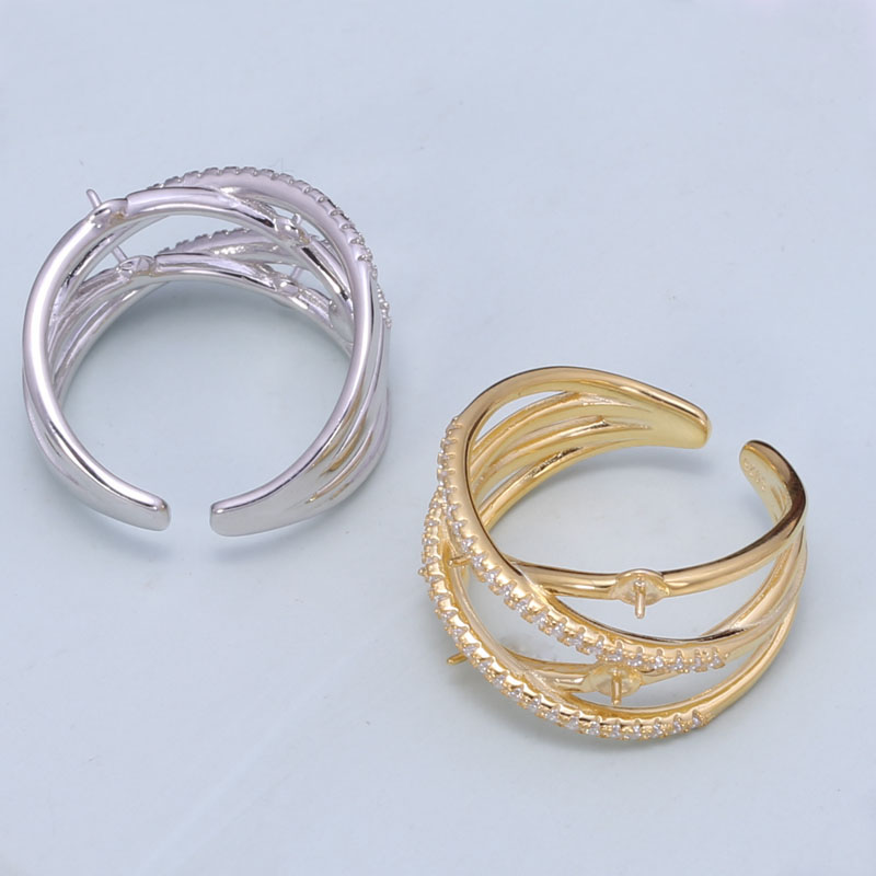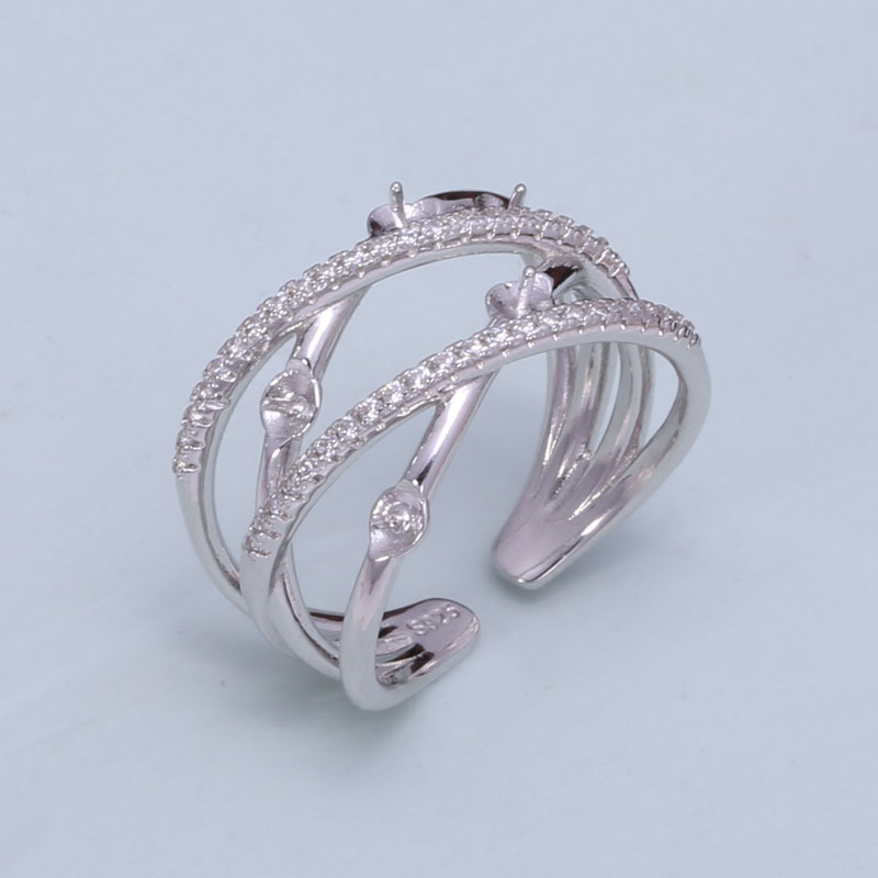 DIY珍珠配件S925纯银微镶时尚4-5mm多珠戒指托指环戒托空托配饰品