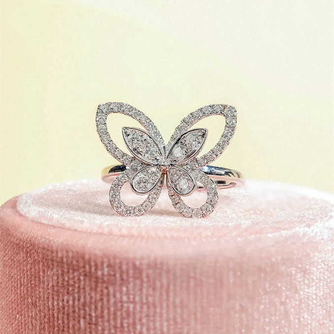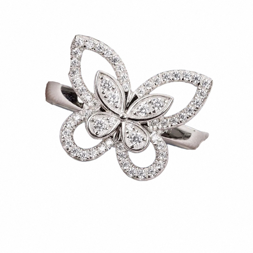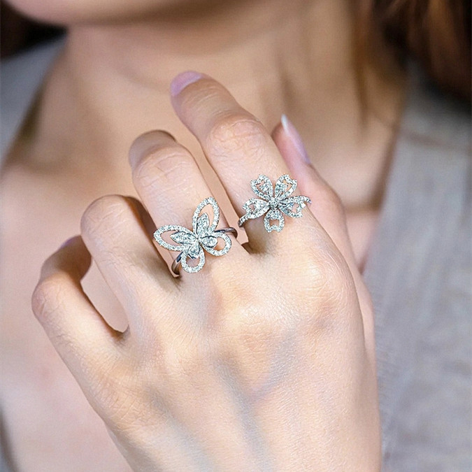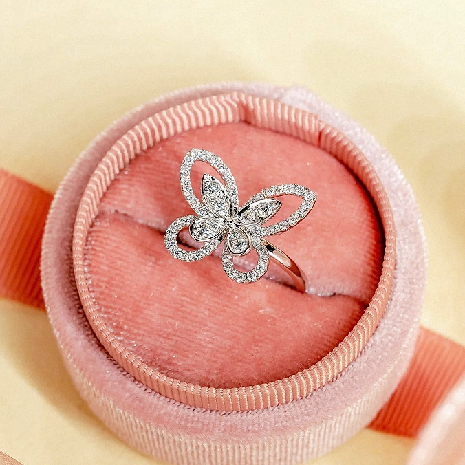 纯银蝴蝶戒指女白金满钻开口可调节指环气质高级名媛送女友礼物潮