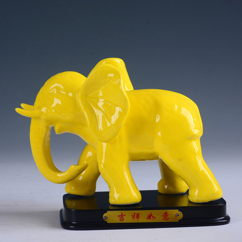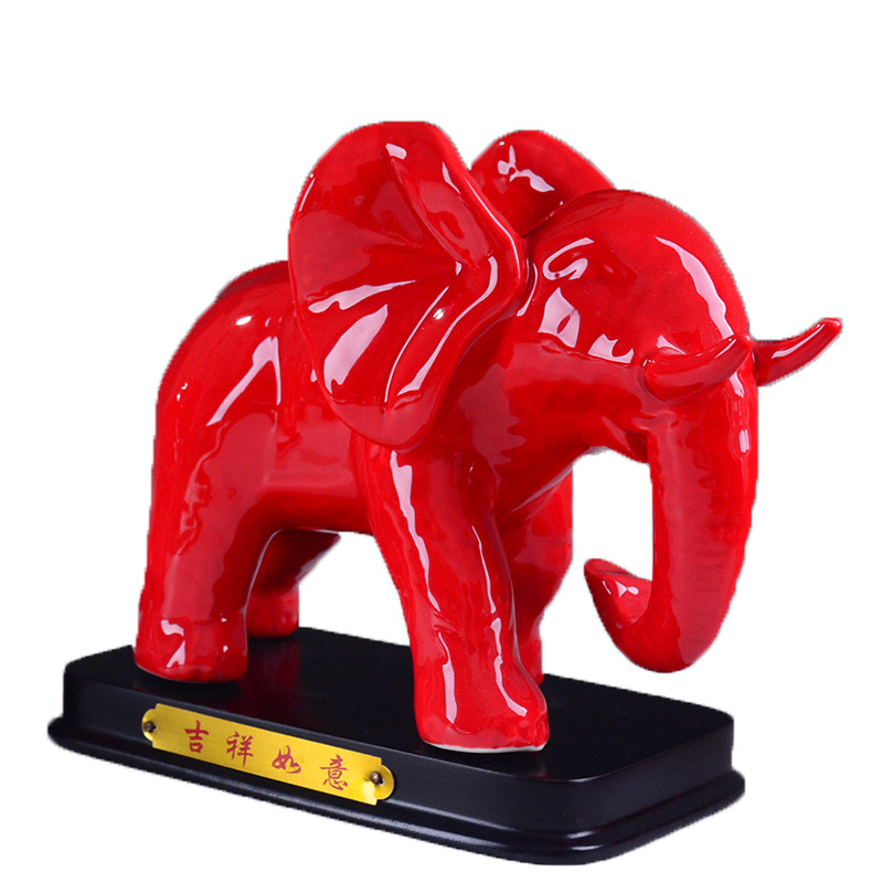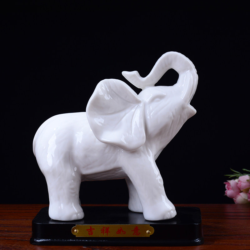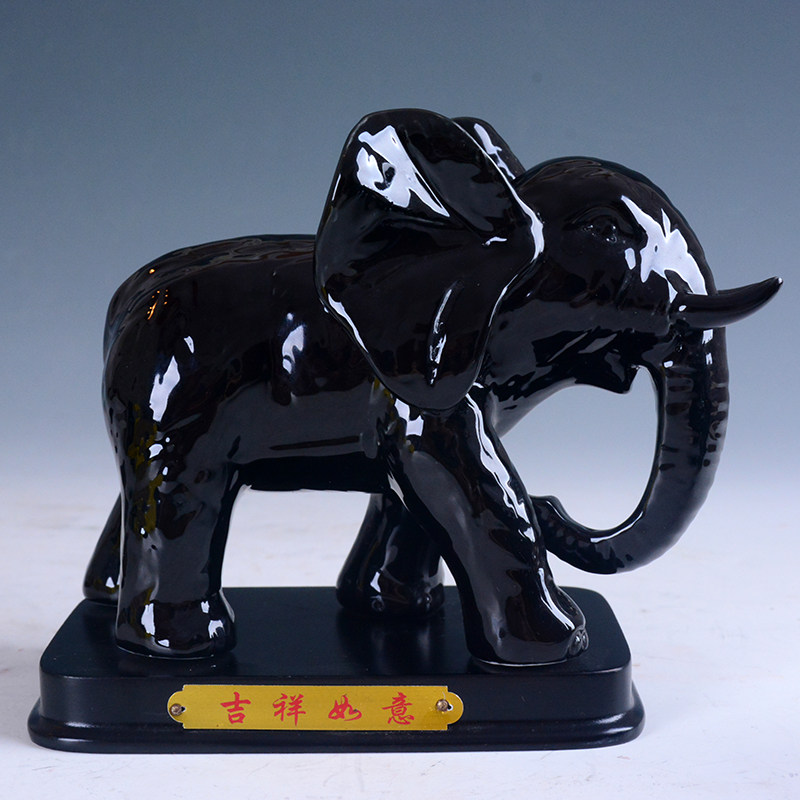 黑色陶瓷大象摆件一对风水客厅工艺品寓意招财风水象小号吉祥如意