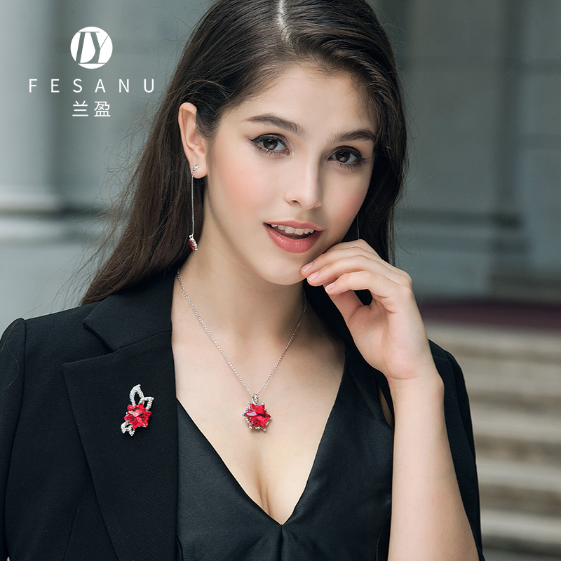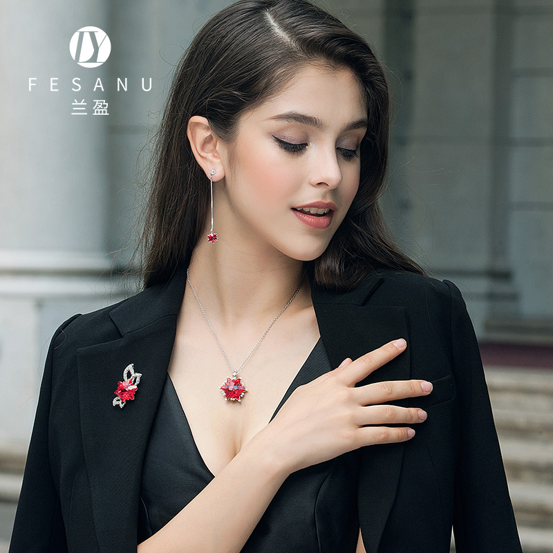 兰盈奥地利水晶雪花项链女2025新款原创设计红色挂坠吊坠生日礼物