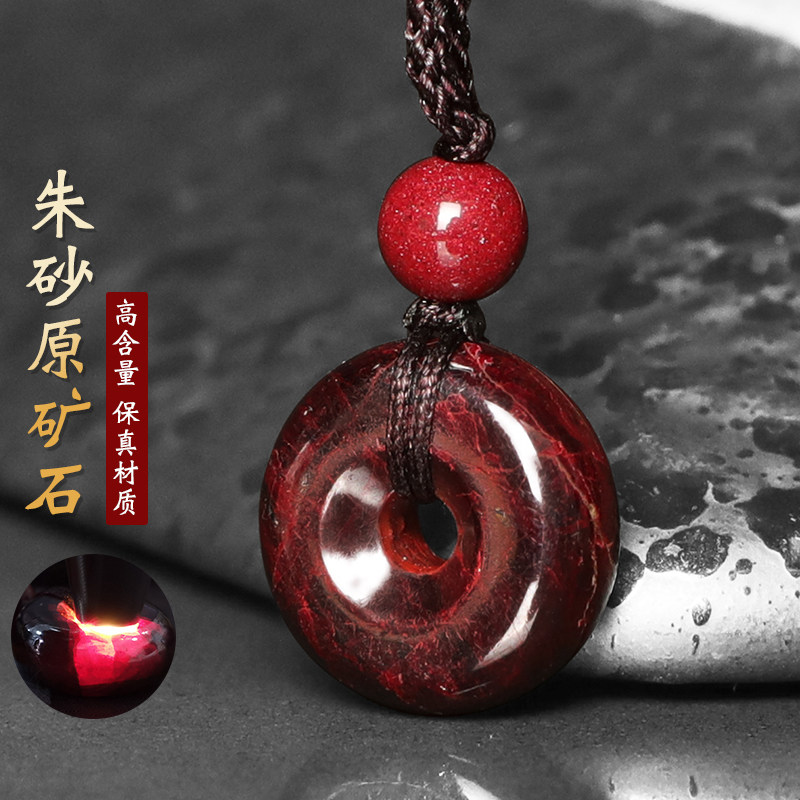 2025蛇年朱砂吊坠男原矿石乌砂打磨平安扣宝宝款女士挂件礼物收藏