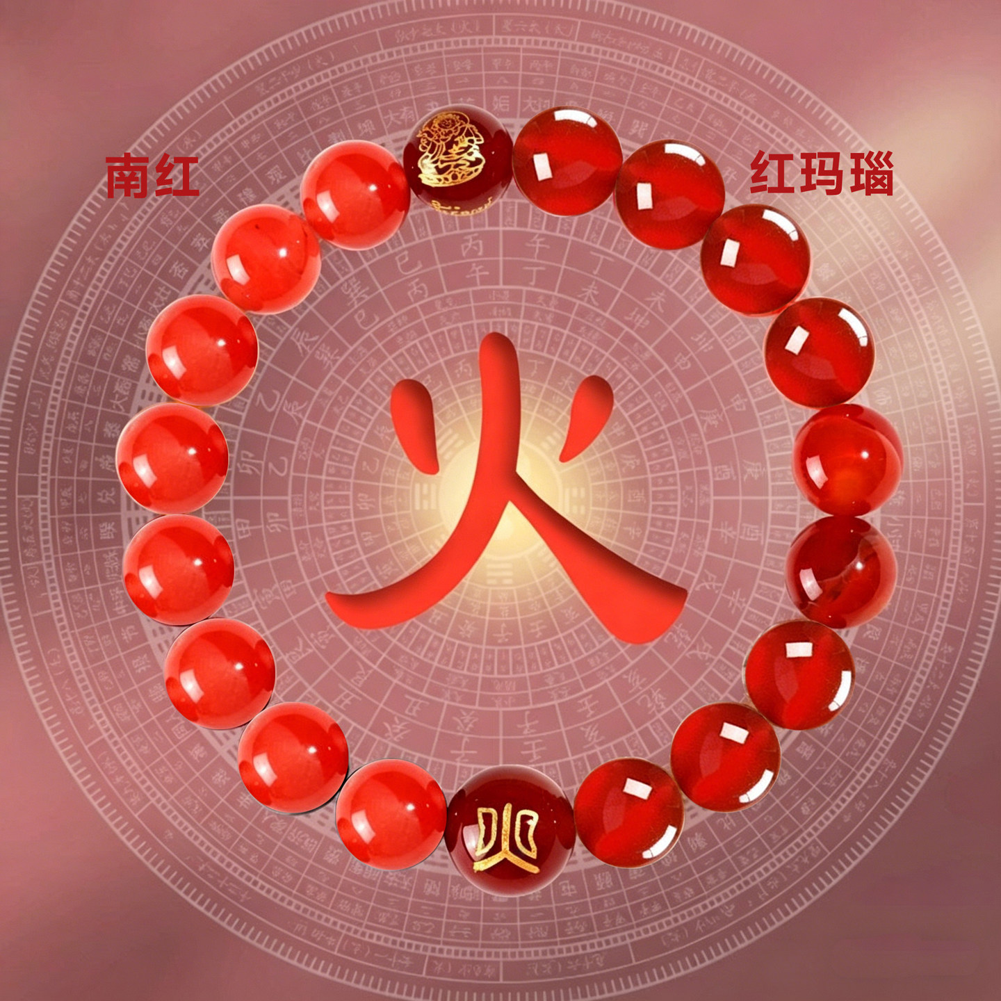 五行天然水晶南红黄玉手串补土喜火多宝饰品红玛瑙财手链男女款