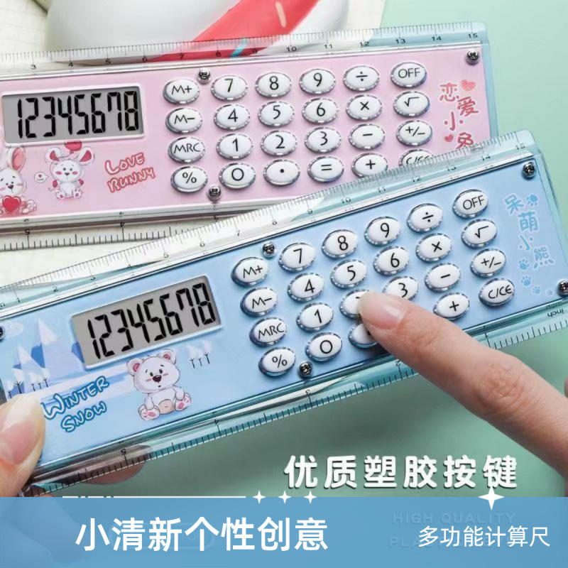 韩版少女心小清新尺子计算器迷你学生办公两用直尺奖品可爱计算机