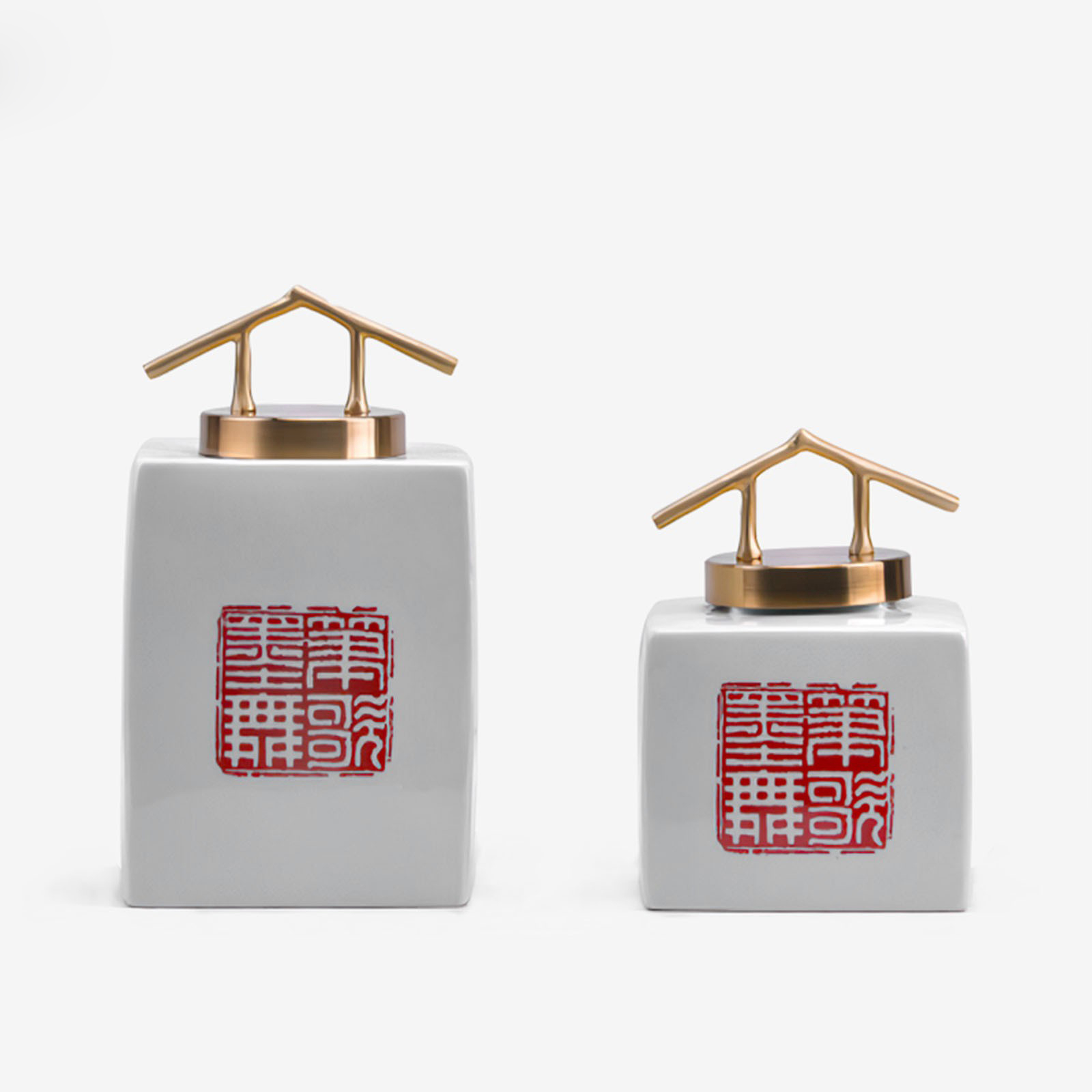 新中式样板间售楼处酒店禅意陶瓷储物罐摆件茶几电视柜装饰品软装