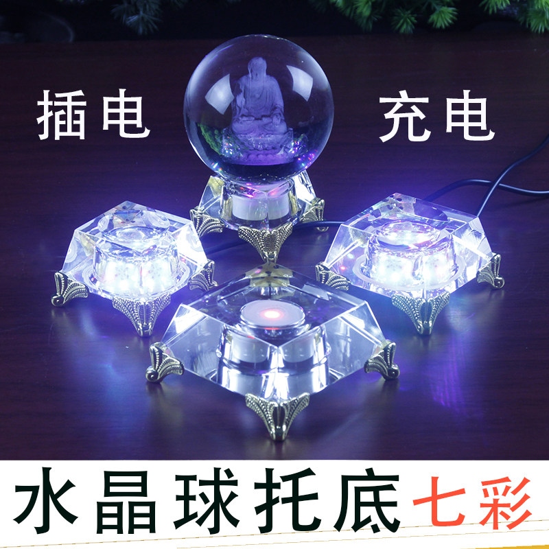 发光底座水晶球托底充电插电LED灯七彩变换办公室书桌面摆件包邮