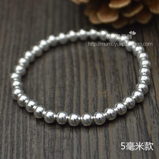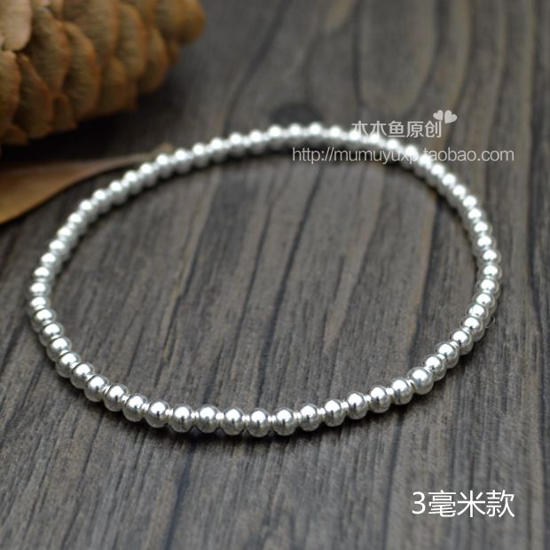 正品定制S999复古纯银珠子情侣宝宝圆珠转运珠手链脚链多圈饰品女