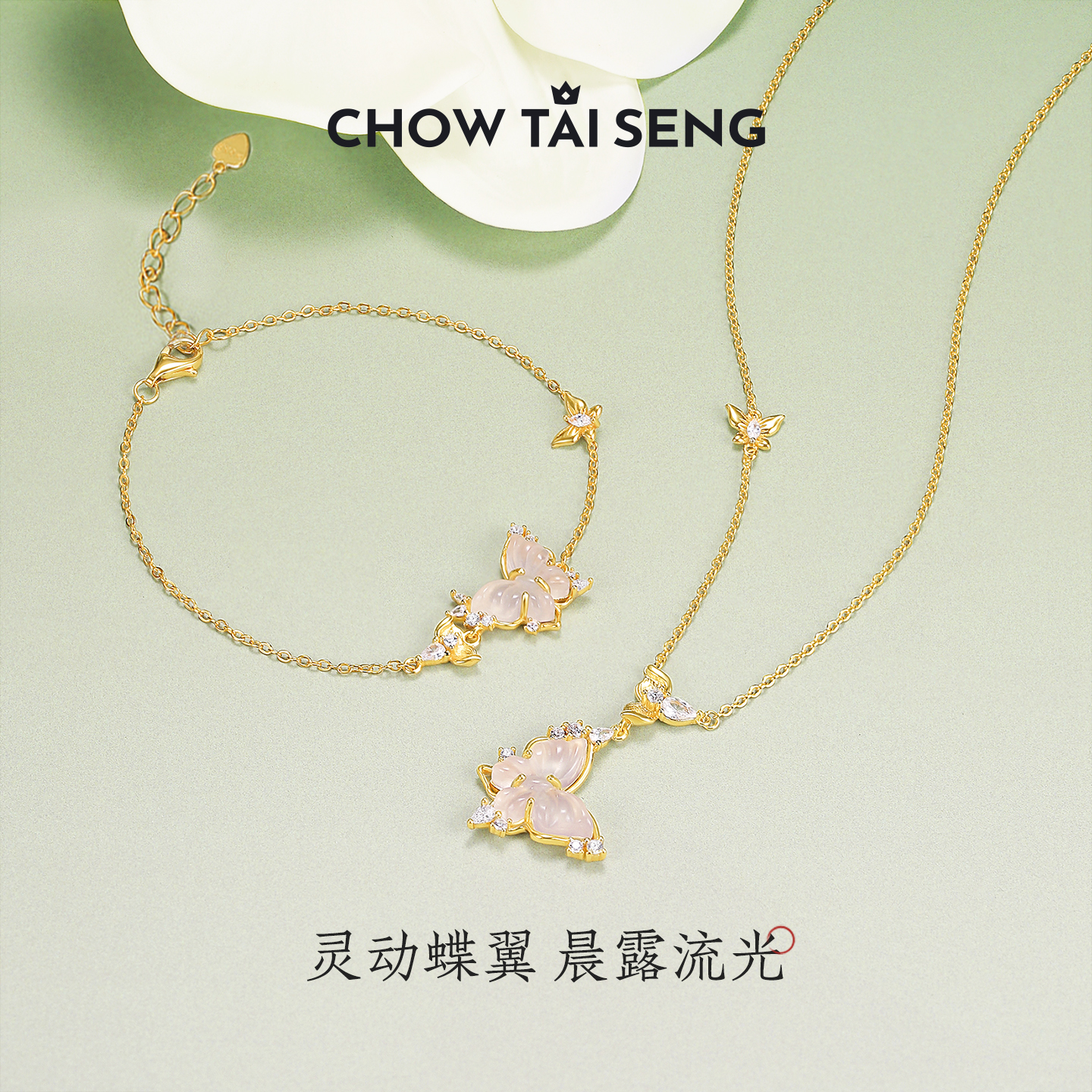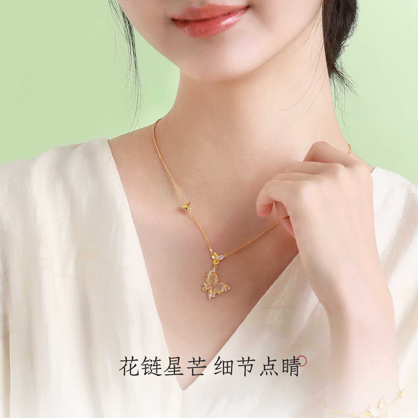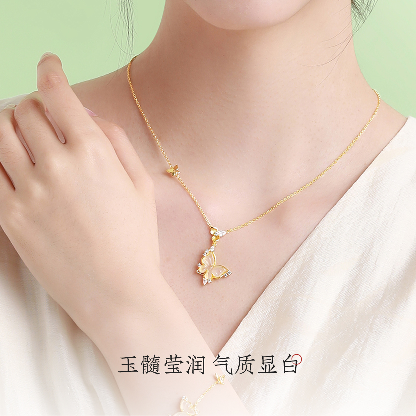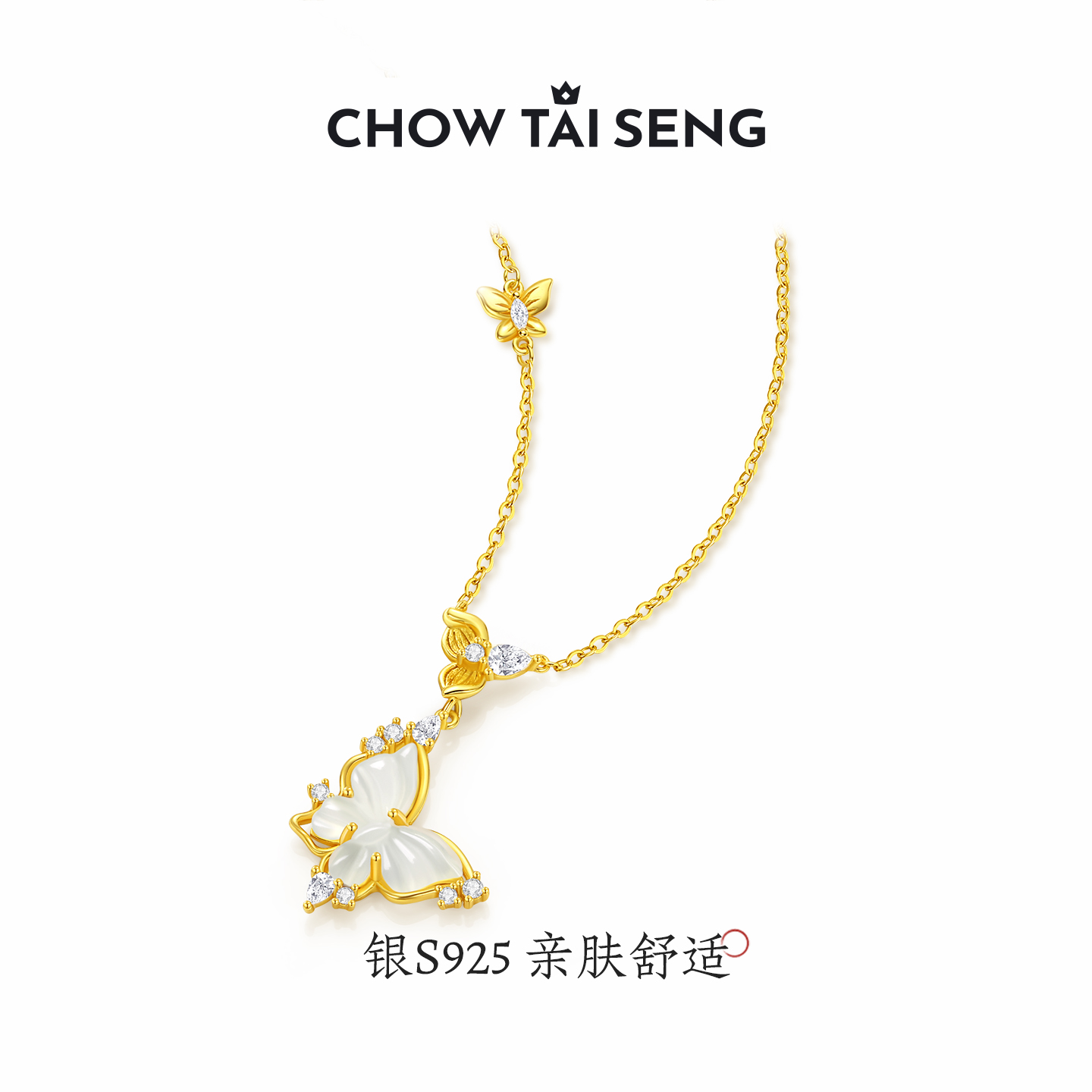 周大生玉蝶轻风蝴蝶项链女款2025新款玉髓锁骨链纯银生日礼物饰品