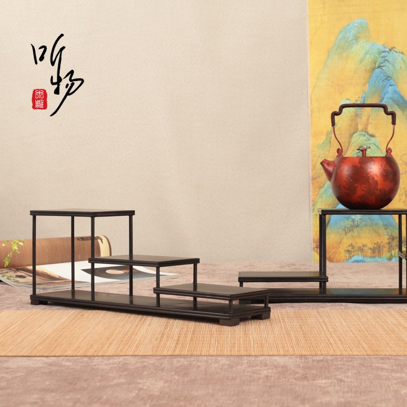 实木紫光檀中式桌面收纳多层架茶壶摆件展示架盆景T香炉铭杯多宝