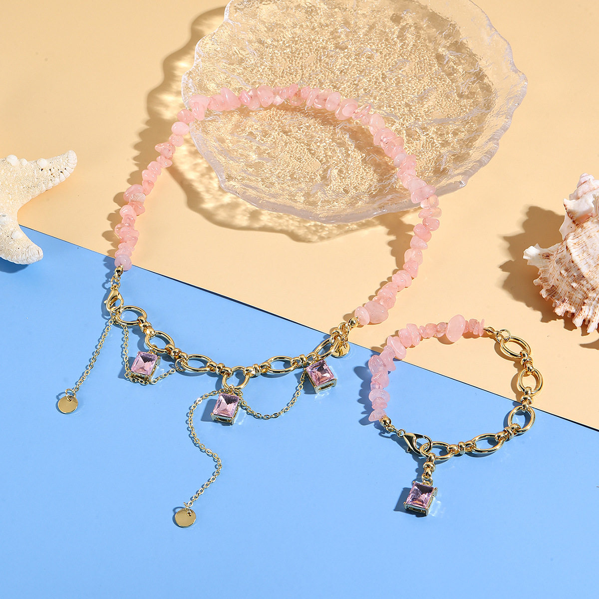 跨境项链手链天然石爱心项链轻奢感紫色水晶ot扣项链手链套装饰品