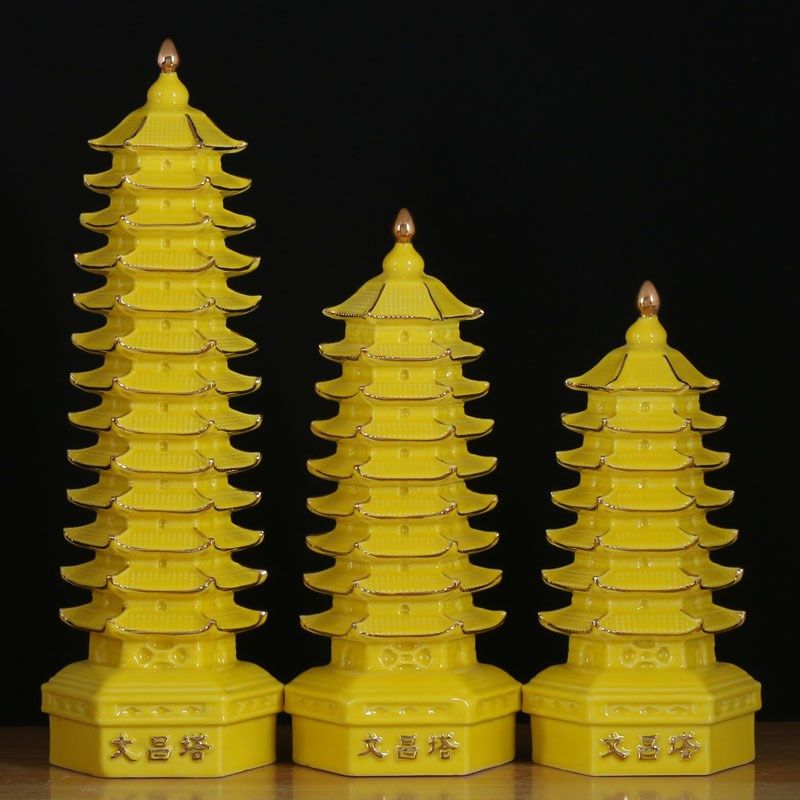 文昌塔摆件陶瓷七层九层十三层黄色白绿色黑色书房办公室书桌客厅