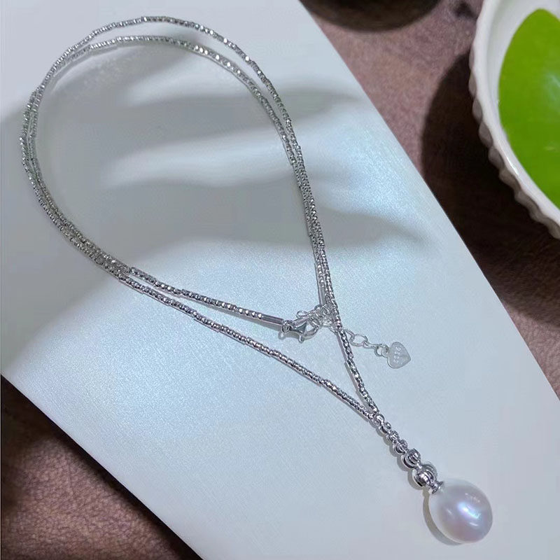 DIY珍珠配件s925纯银精工车花毛衣链套链项坠一体链空托配8-13mm