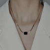 优雅黑色方形几何项链蛇骨链钛钢镀18K玫瑰金颈链女彩金高级感潮