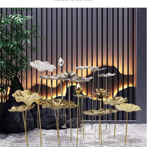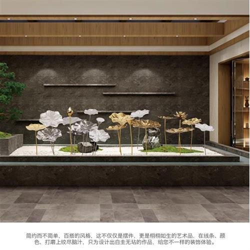 不锈钢金属铁艺荷叶荷花落地摆件酒店走廊庭院水池水景雕塑装饰品