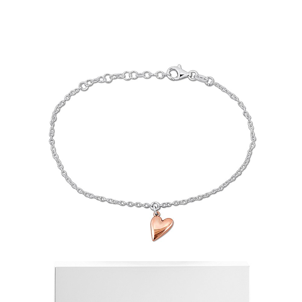 自营 Mimi & Max 玫瑰和纯银电缆链上的粉红色心形吊饰手链 - 7+1