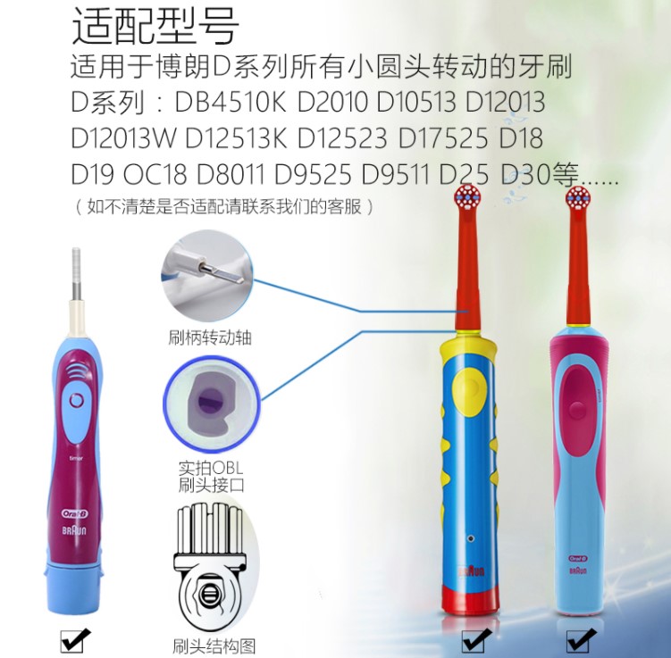 通用德国博朗OralB/欧乐B儿童电动牙刷头EB10-4软毛替换刷头 D12