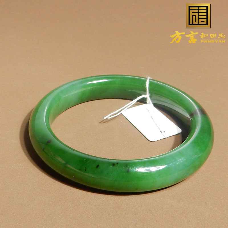 方言和田玉精品珍藏级俄罗斯老坑料细腻油润辣阳绿碧玉59mm手镯X6