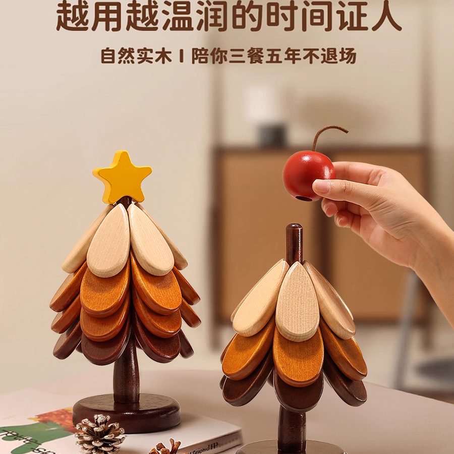 高级感圣诞树隔热垫餐桌摆件创意一棵树实木防烫锅垫折叠杯垫碗垫