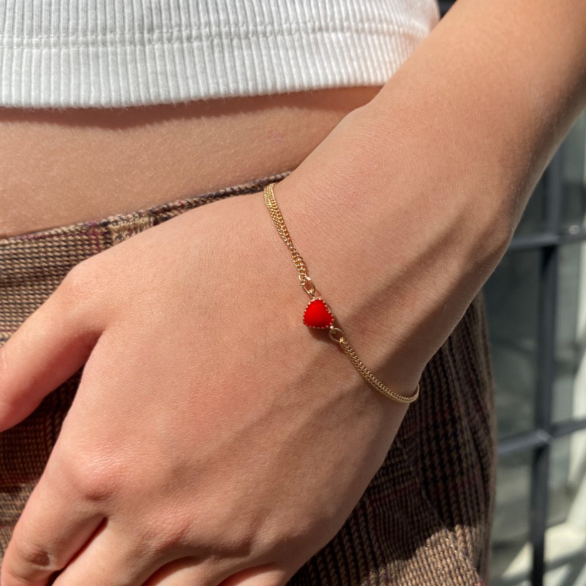 bm手链夏新款红色小爱心金色链条配饰女生国内代购brandymelville