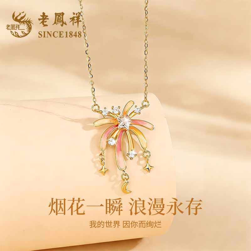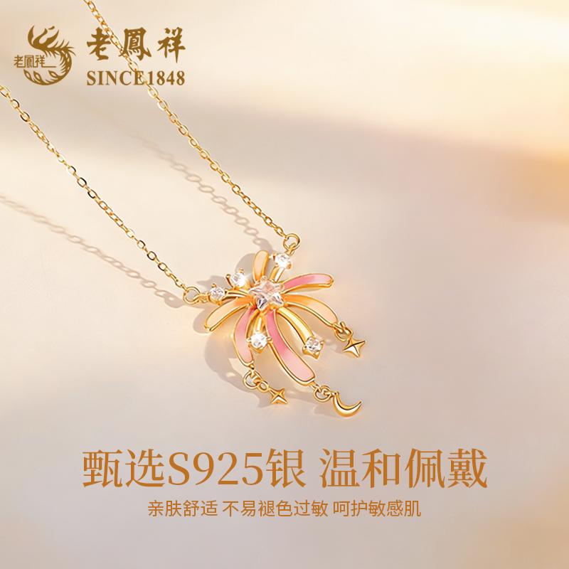 老凤祥烟花银项链女新款s925银荧光珐琅锁骨链轻奢生日礼物送女友