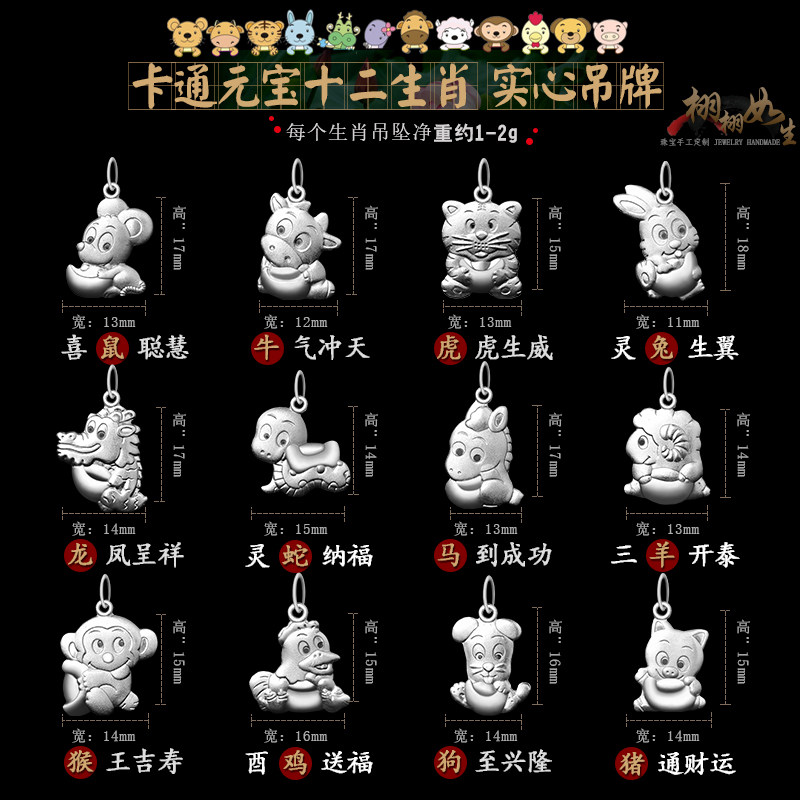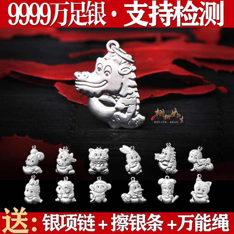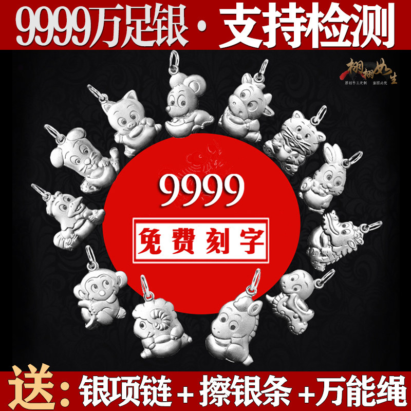 刻字实心9999纯银项链吊坠生肖龙蛇鼠牛虎兔马羊猴鸡狗猪男女小孩