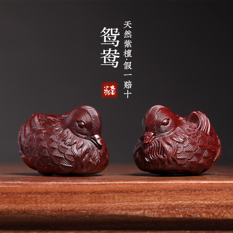 天然绿檀紫檀实木雕刻鸳鸯手把件桌面小摆件家居装饰挂件小礼物
