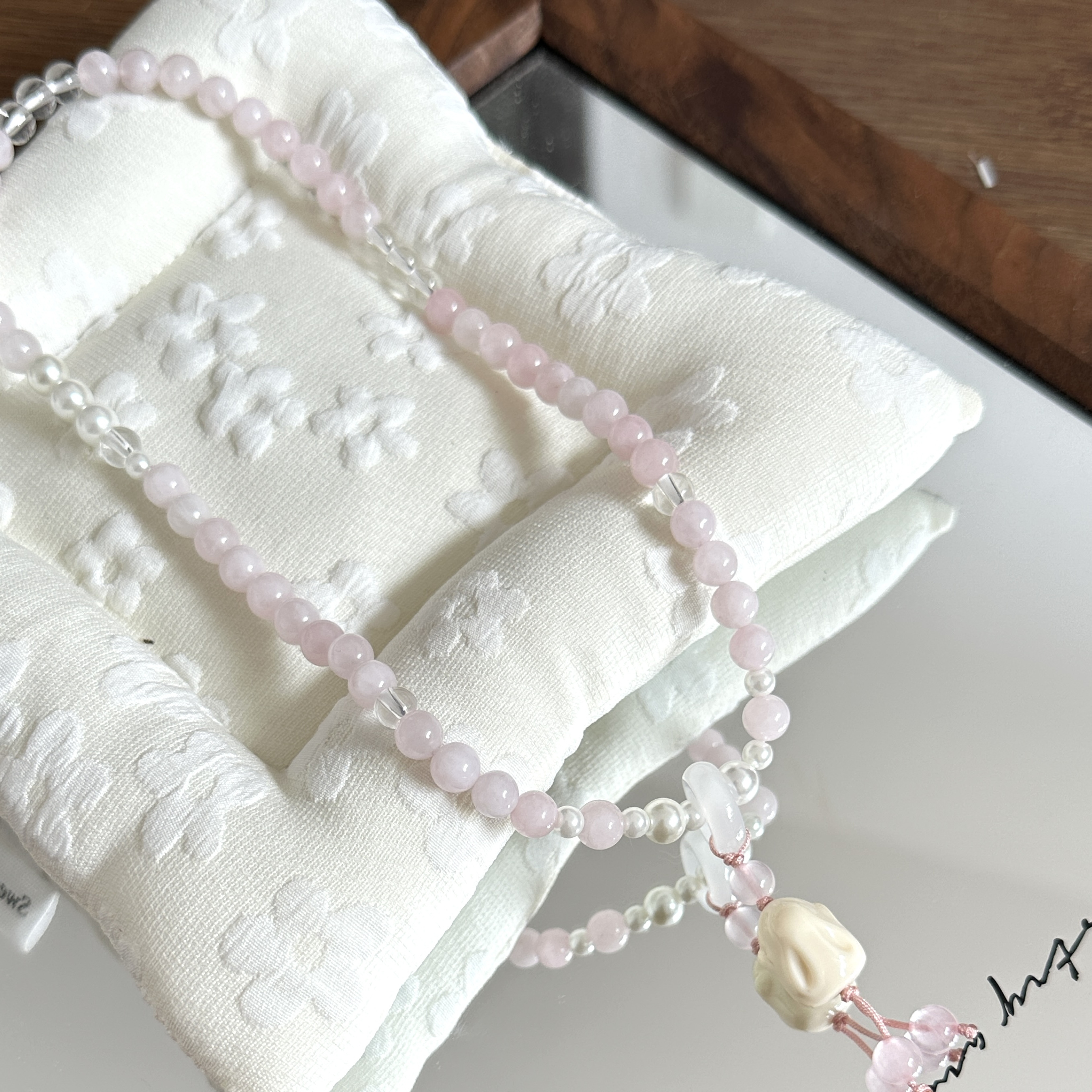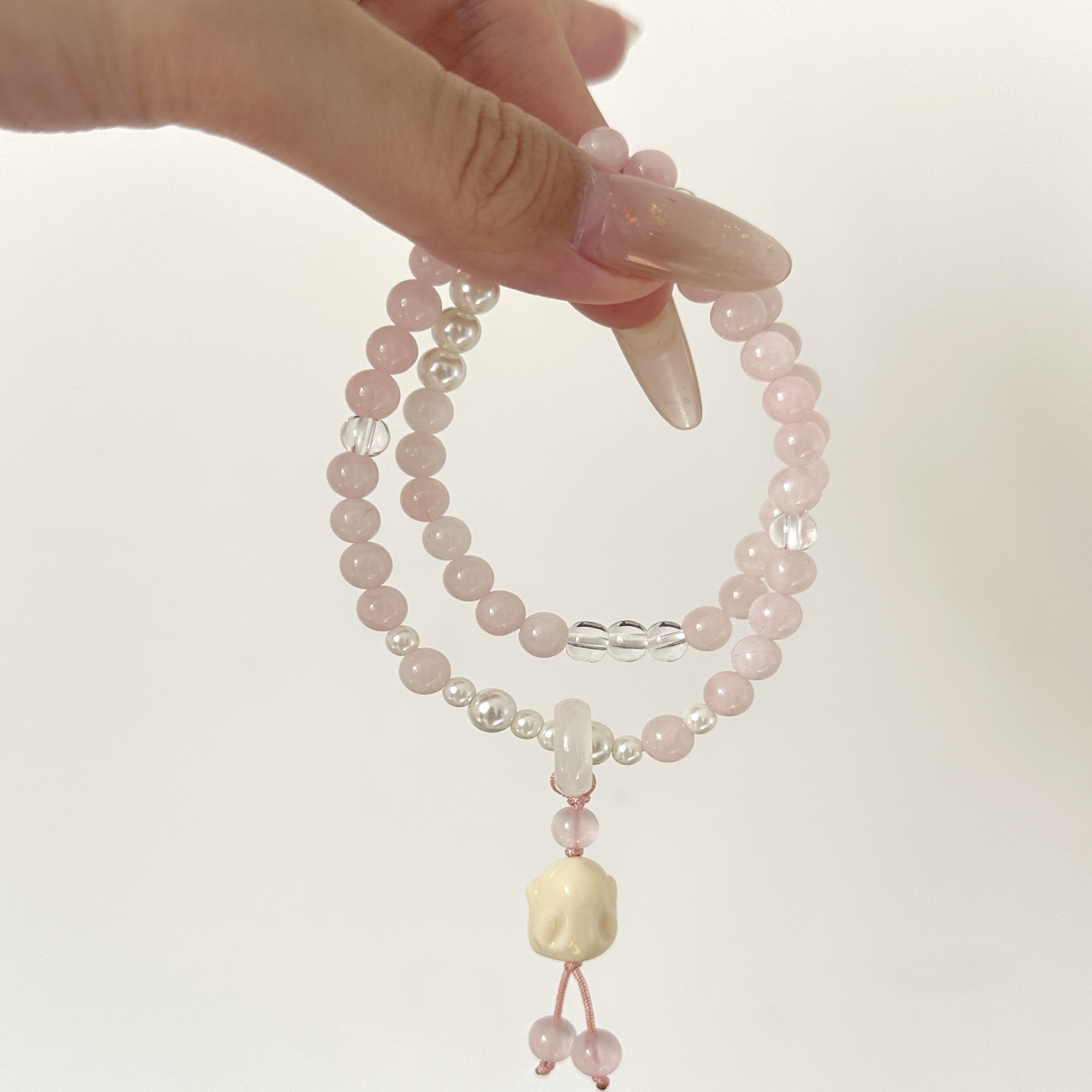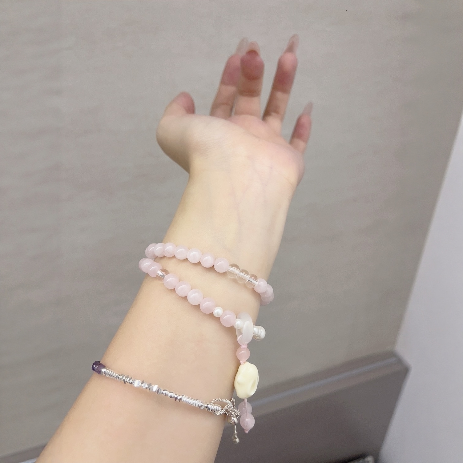 粉晶珍珠双圈手串手链可爱小兔轻奢女中式精致多圈手串天然粉水晶