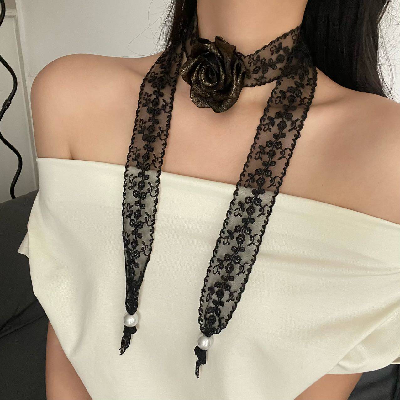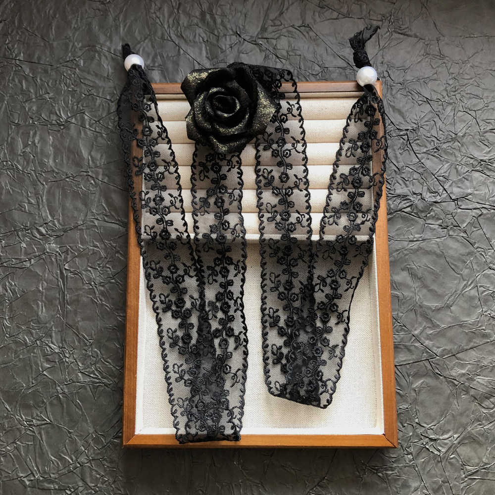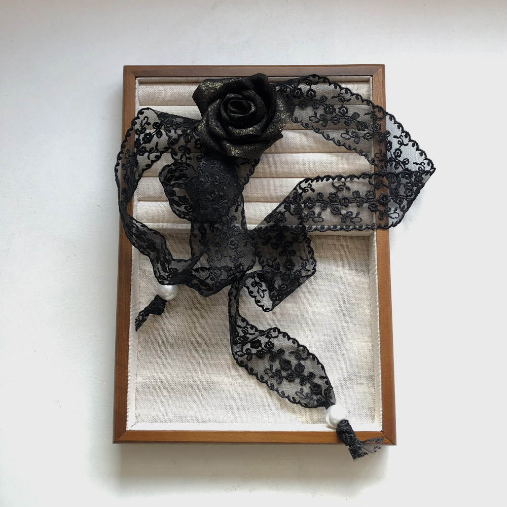 性感纯欲风黑色蕾丝玫瑰花朵绑带项链女超仙优雅长款choker锁骨链