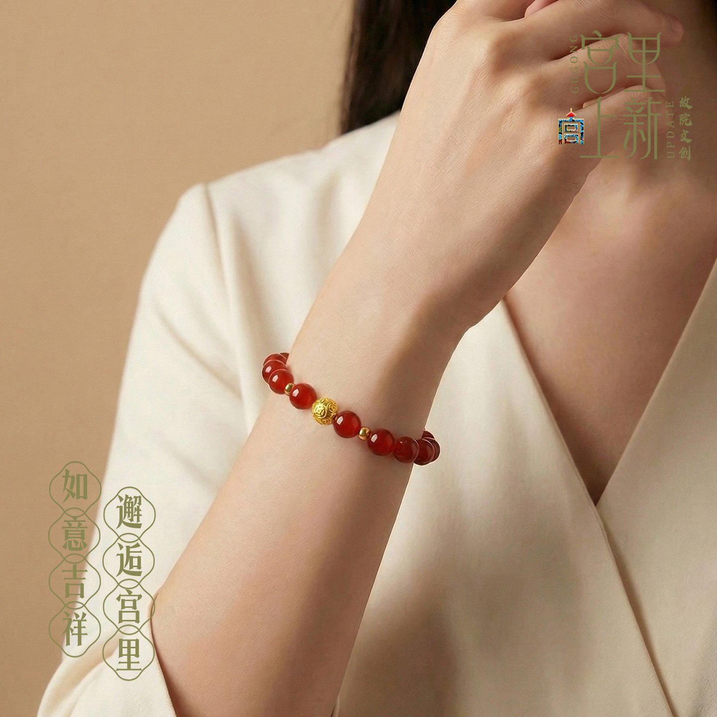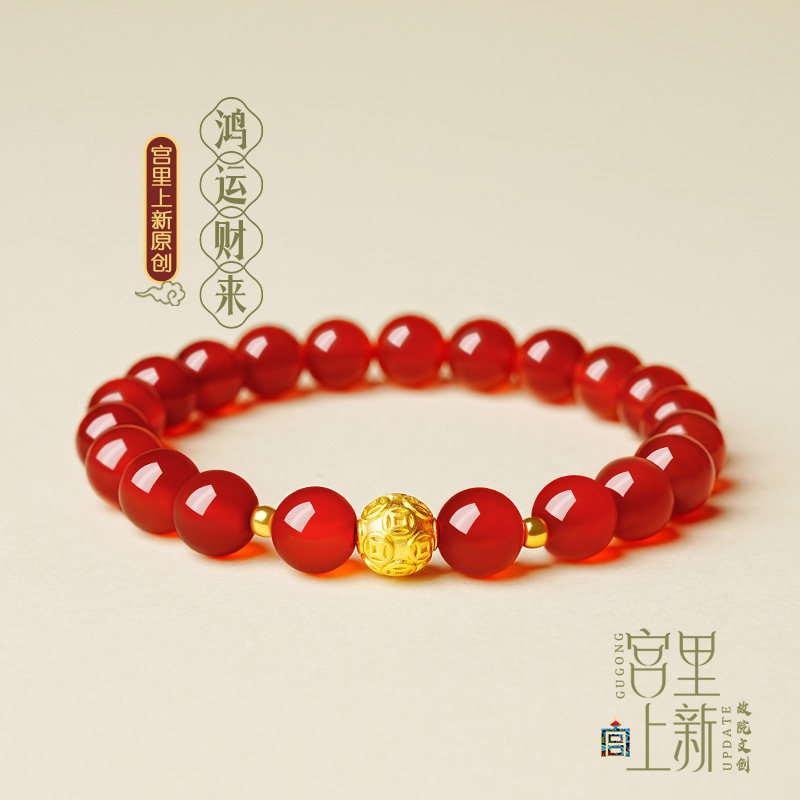 宫里上新红玛瑙手串女999足金珠红色手链串珠手饰新中式生日礼物