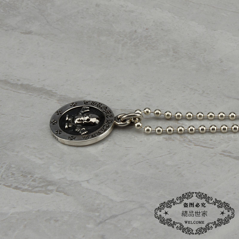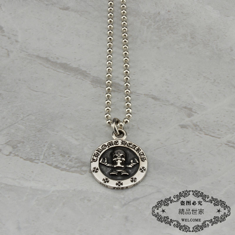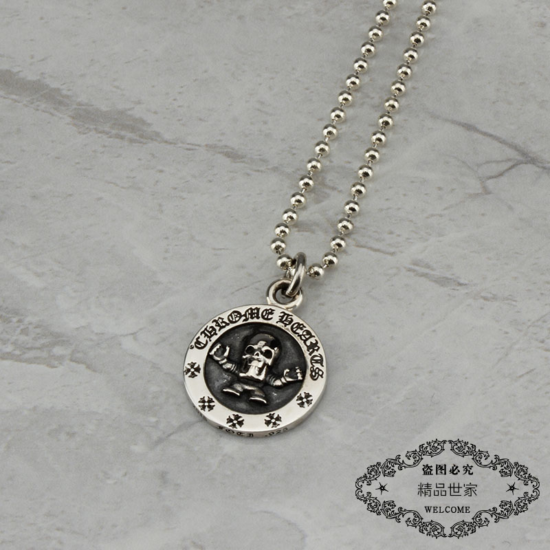 ROCK HEARTS潮牌圆型FOIT骷髅徽章吊坠朋克个性时尚S925纯银吊牌