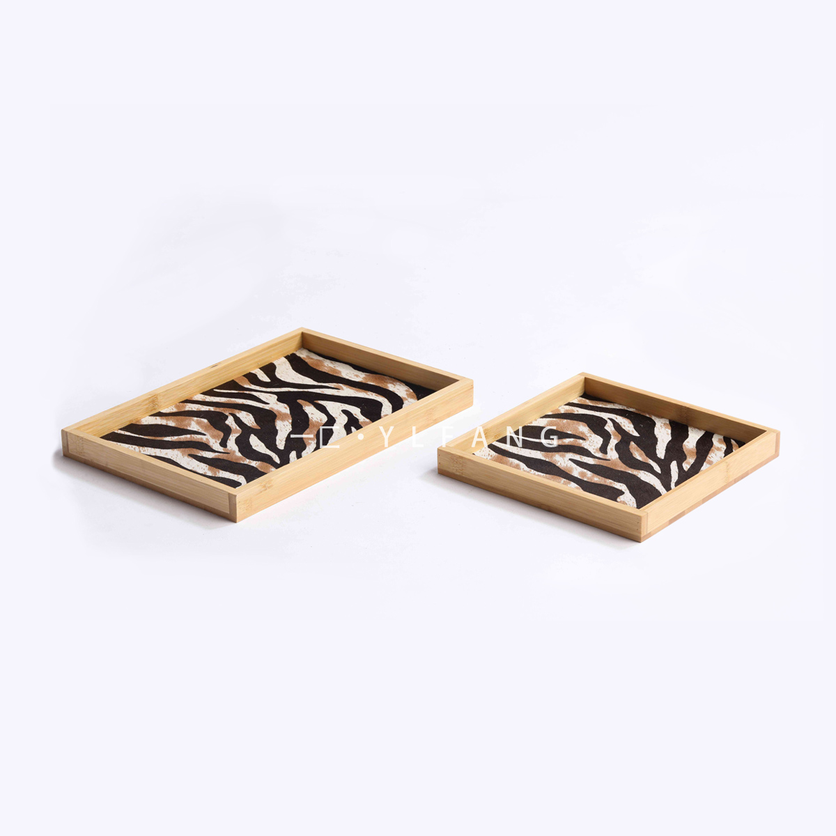 一匚 现代轻奢条纹马毛皮革组合摆件 样板间储物盒托盘纸巾盒饰品